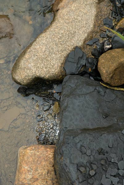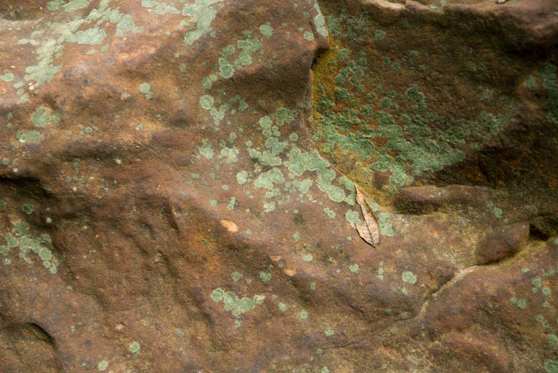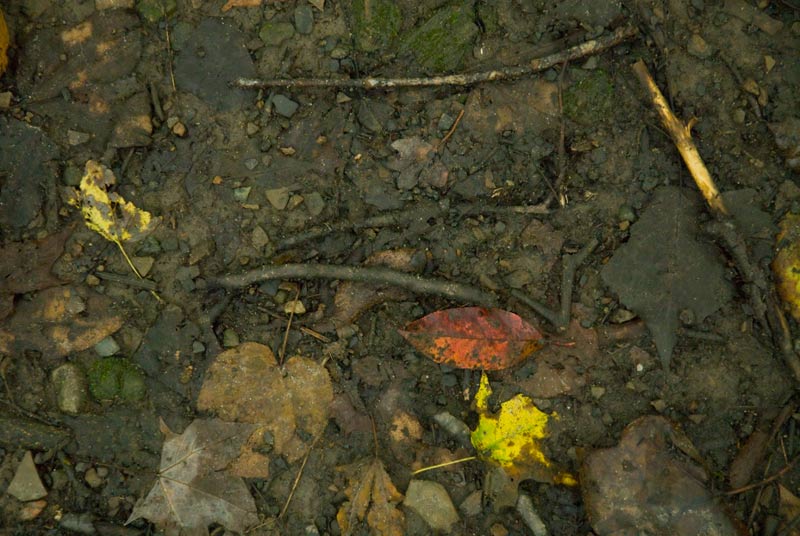 Yesterday morning was dismal and damp, and the river and surrounding woods held nothing spectacular for me. After making stops at all my usual places inside the Schoepfle Gardens I climbed up on the Peace Rock. Sometimes I see something special from that vantage point, but usually what I do is realize that it’s all special, all the rocks, all the trees, all the leaves, all the water, everything. It’s good just to be looking at the woods and listening to the river, even if it’s cloudy and I can’t find my composition. The first photograph shows the Peace Rock in situ (middle distance, left), and the second one shows what I saw from atop the rock, looking in the other direction. The other photos show some of the other rocks and leaves near and in the river. Nothing/everything spectacular.