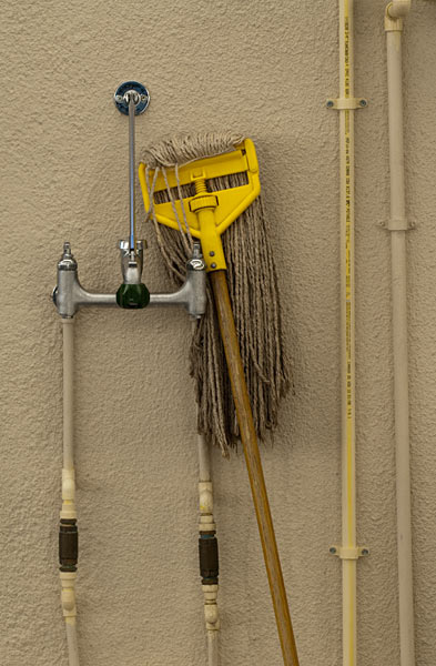 Janet and I walked around downtown Sarasota this morning, looking for things to photograph that could be construed to fit the theme of “holiday.” We’ve joined a photography meet-up group here, and for the next meeting we are to take photographs of something that says “holiday,” at least to us. Bust. Neither of us felt as if we had nailed it. Most “holiday” things were way too obvious and made boring photographs. But meanwhile, we got to prowl the streets and alleys again, and I found a few nonholiday goodies there, including my old friend the mop girl. I wish I knew for sure what the thing in the third photograph is. I think it has something to do with storm-surge flood control in case of hurricanes, but I really don’t know. Most of these gizmos that I see are horizontal and exposed to the elements, where they take on lovely rusts and other colorations from layers and layers of paint trying to ward off the rust. This vertical one was under a roof and rather pristine. I thought it looked monumental.