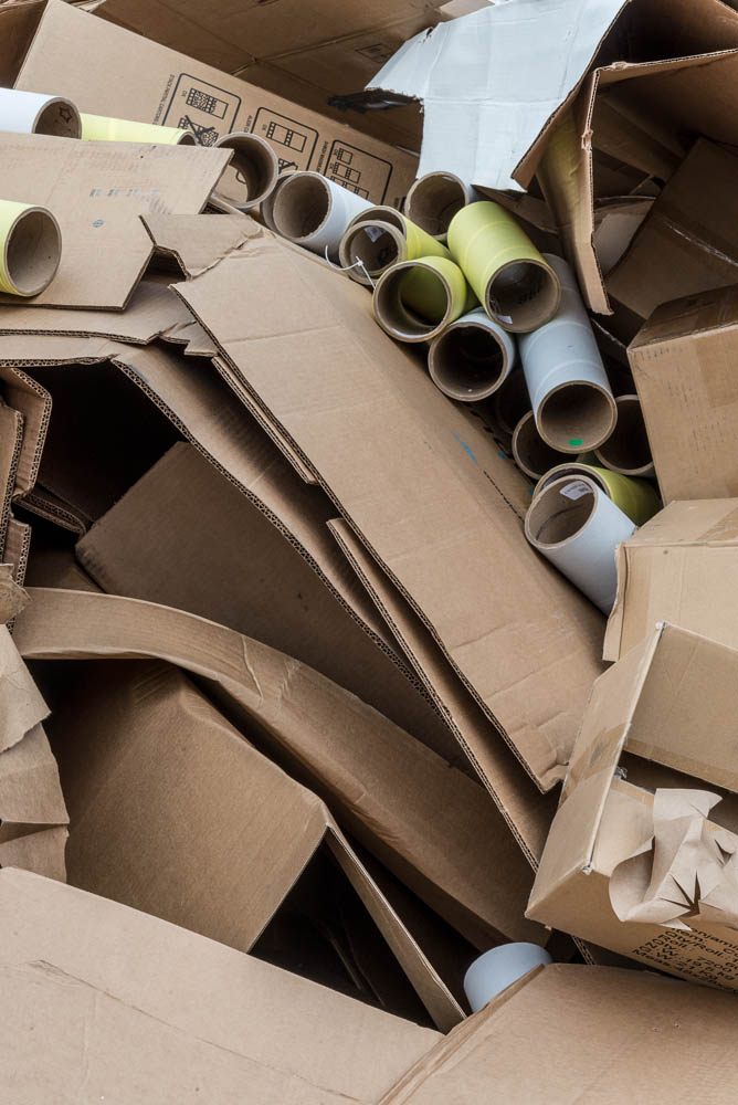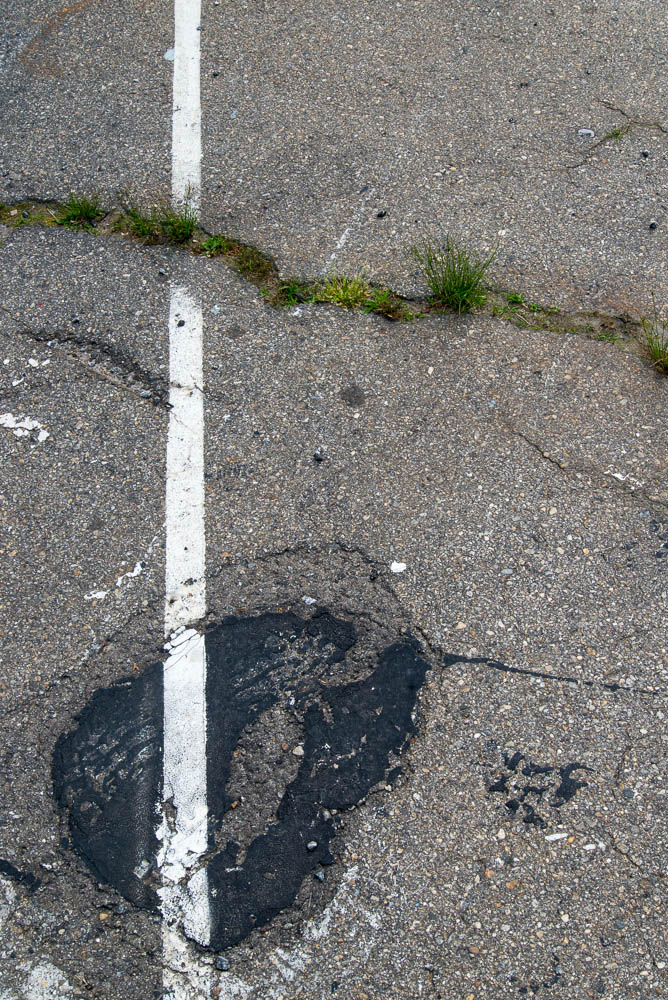 When I drive back north from Florida I go through North Carolina, stopping one year to visit with my friend Erika and the next year with my friend Kathie. This year it was Kathie, who lives in Asheville. Kathie is a weaver  and one morning, letting her get some work done, I ventured out with my camera toward the old side of town. I had my hopes set on finding interesting buildings, and I found some, but I also found a parking lot that just couldn’t be ignored. Another unexpected treat came in the form of a paper-recycling facility. I have to admit, as much as I support paper recycling, when I saw the piles of shapes and textures, I kept thinking, “Someone could make something from all this wonderful stuff!”