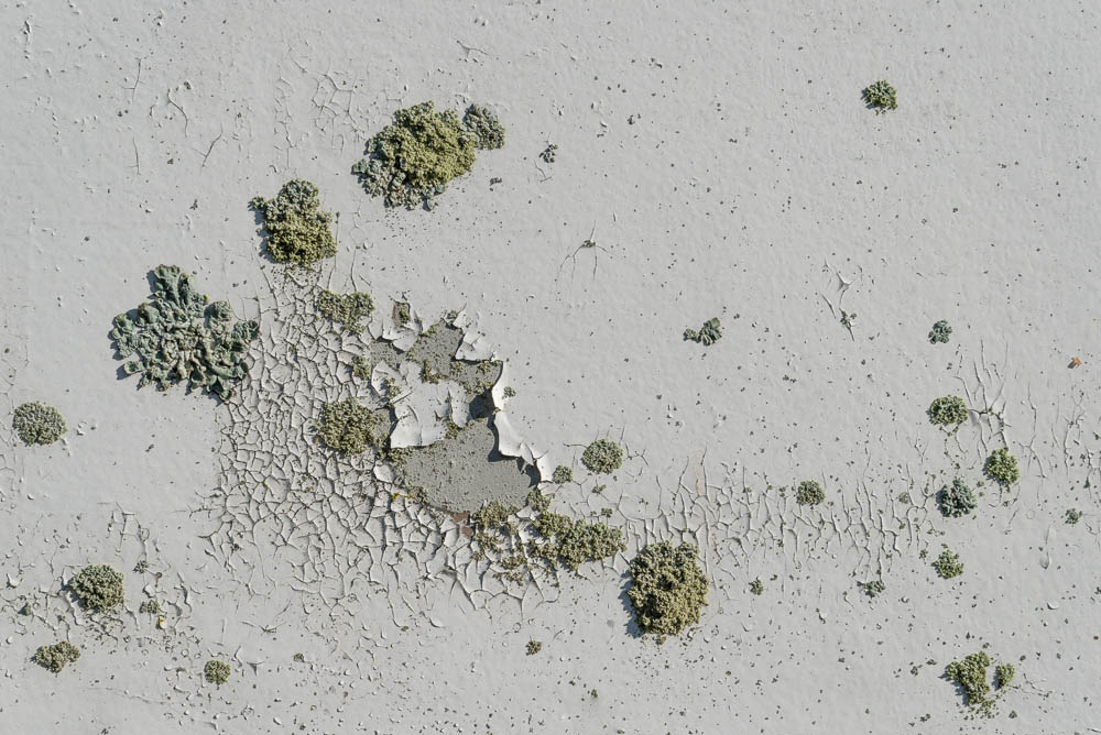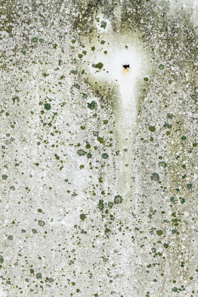 I love that first walk with my camera after I get back to Ohio. Anticipation of the freshness of things even gets me moving a bit earlier than usual, and I catch more of the early light, as shown in this first photograph, taken on my walk down to the Vermilion River May 25. I also notice things I had never noticed before, like this empty sign outside an empty clothing factory on my route. The blobs are lichens. The way the paint has cracked reminds me of the way the Leptothrix discophora films have cracked in these photographs (post of August 13, 2011, fifth and seventh shots).
