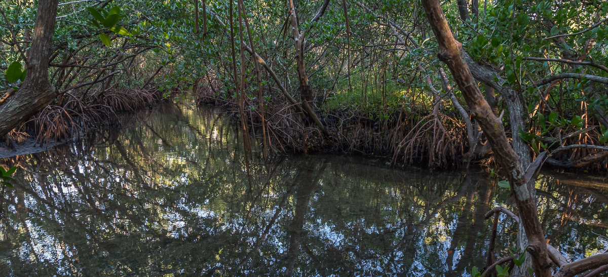 Forty-three minutes after I took the photo posted yesterday, I discovered the beginning of a small path I had only travelled further along. I was starting to lose that early light, but among the mangroves things still had a fresh look and feel.