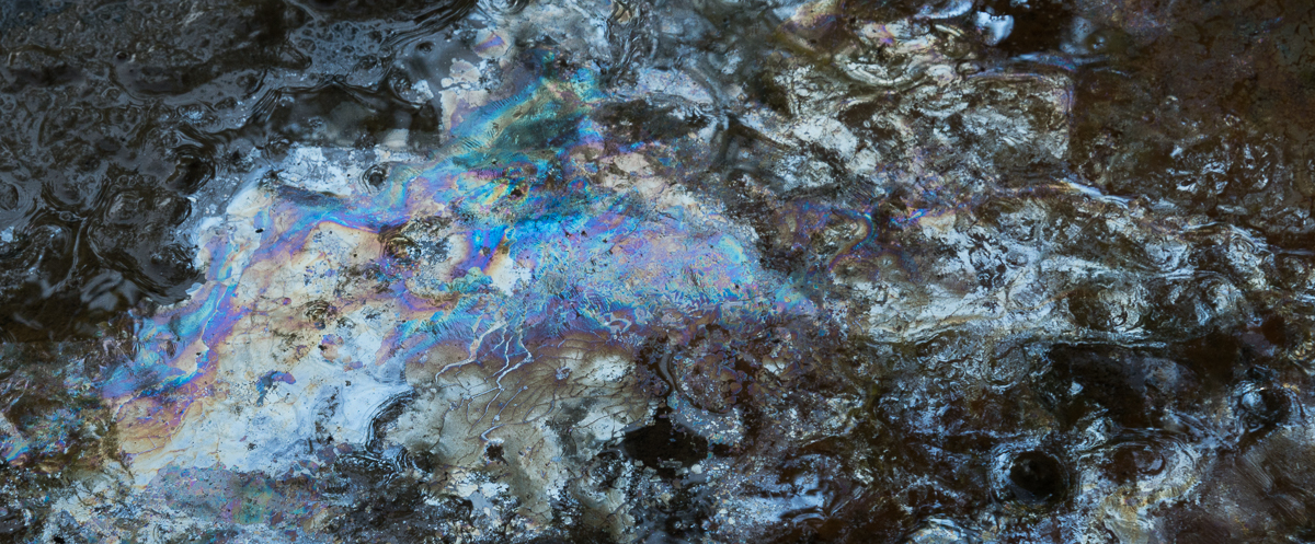 This would be a good time to go back to the blog post of August 16 and reread June Goodwin’s poem, which really has more to do with the iron bacteria than with the calligraphic marks of tar patches.