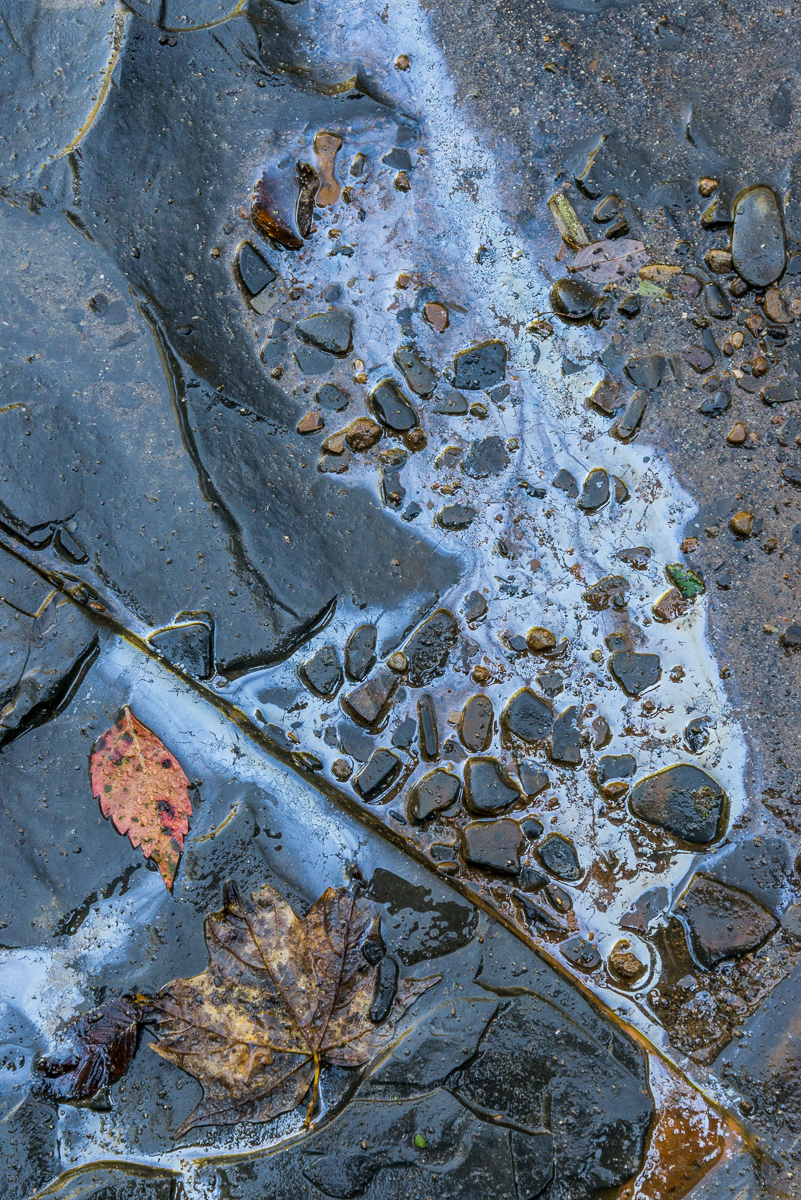 This entry was posted on October 6, 2014 by Linda Grashoff. It was filed under Iron Oxide, Leaves, Leptothrix discophora, Nature, River, Shale, Stones and Rocks and was tagged with autumn, iridescence, iron bacteria, leaves, Leptothrix discophora, nature, photography, rocks, Vermilion River.