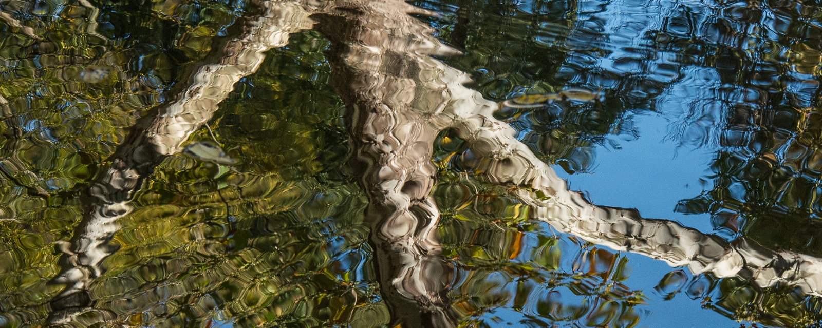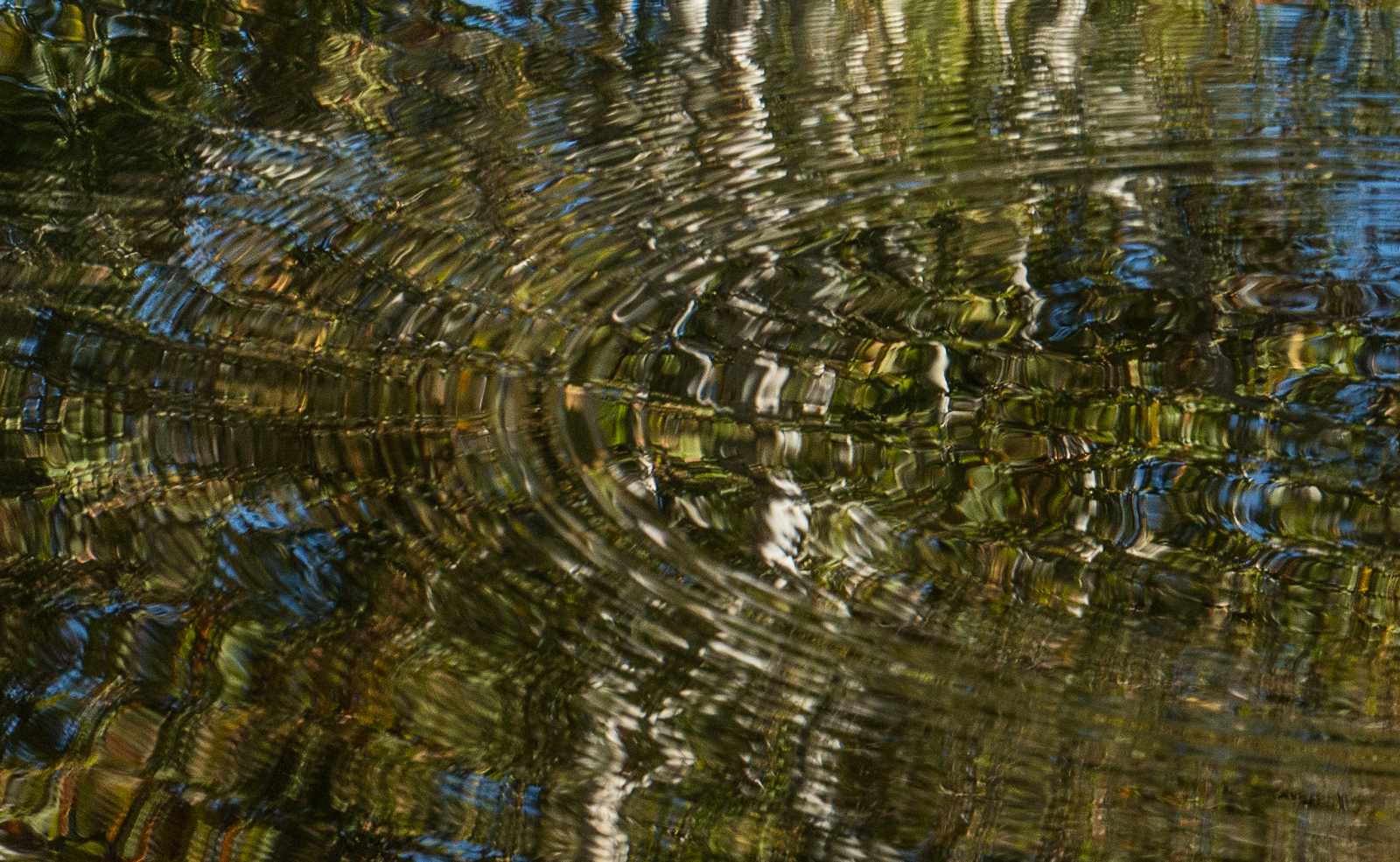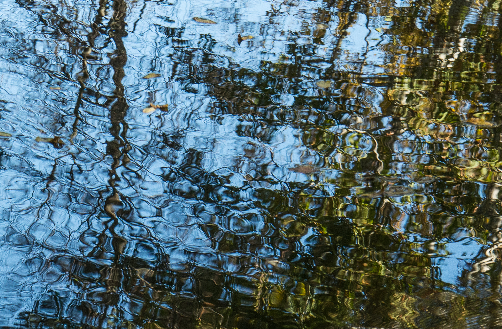 As you may have noticed in the photos of the last two days, October 11 was a sunny day. Sunshine always intensifies the reflections in the black-water Back Pond at Schoepfle Garden. It also allows for faster shutter speeds, resulting in more interesting photos of ripples in the pond. The second through fifth images below are close crops of the first image.