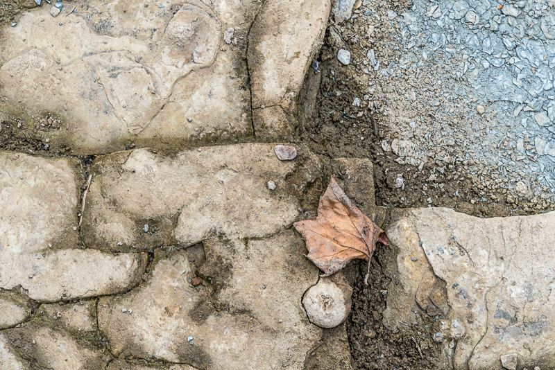 The round object below the leaf is a lump of marcasite, an iron-disulfide mineral that can contribute to the growth of iron bacteria like Leptothrix discophora. I was puzzled Saturday that I didn’t see evidence of the iron bacteria in this area. I’m still puzzled.