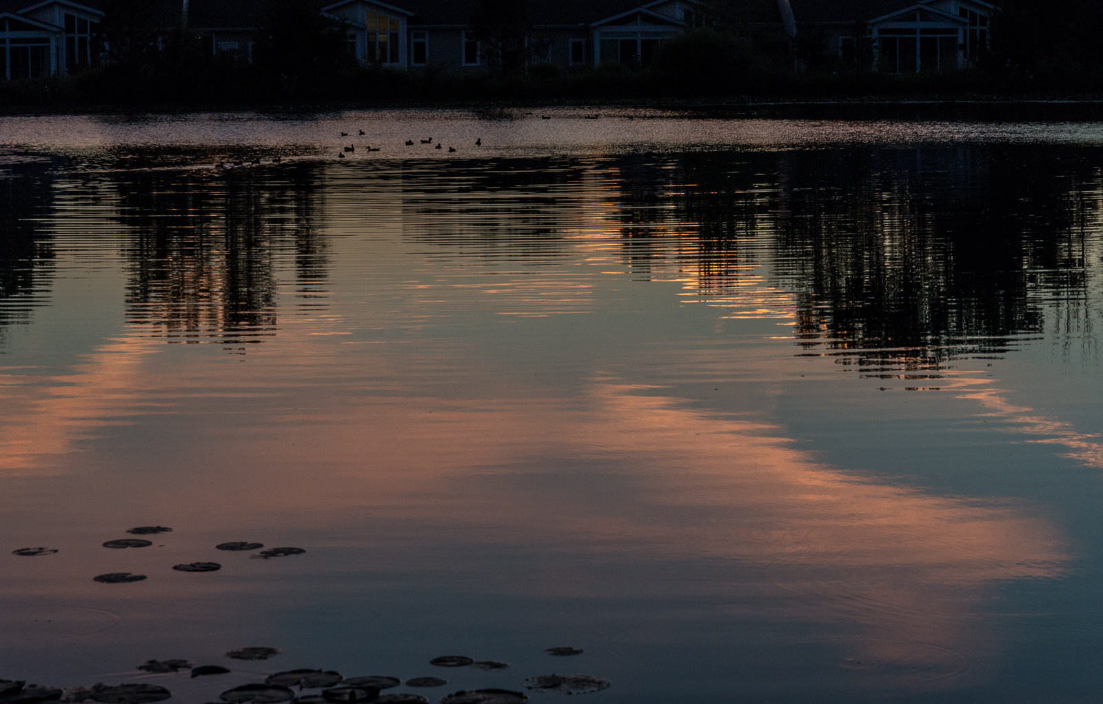 More mallards gathered on sunset-struck Rock Pond Monday night than I’d seen there previously.