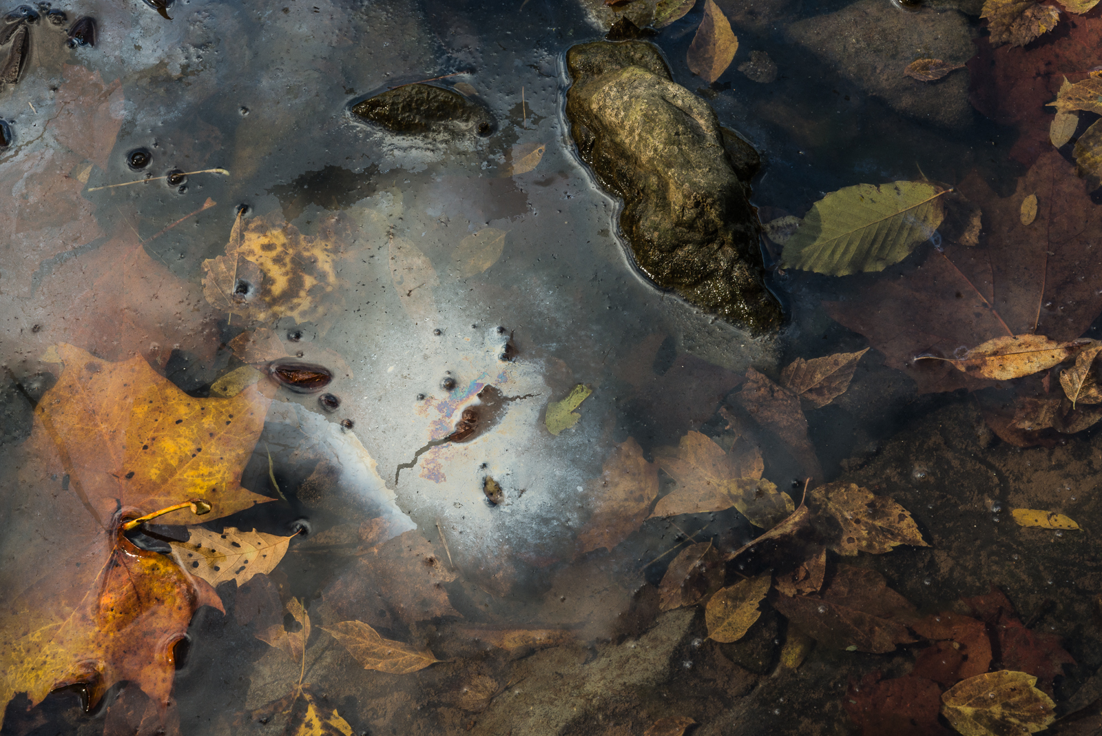 This entry was posted on November 16, 2016 by Linda Grashoff. It was filed under River and was tagged with autumn, iron bacteria, leaves, Leptothrix discophora, nature, photography, Schoepfle Garden, Vermilion River.