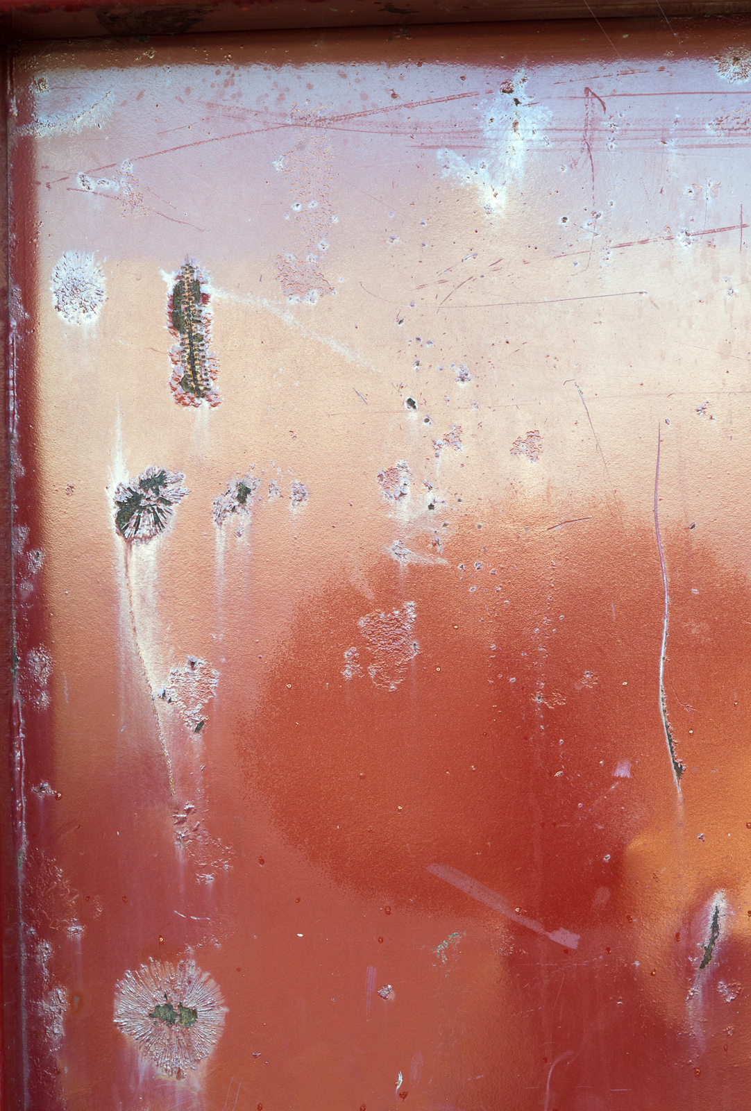 This entry was posted on June 17, 2017 by Linda Grashoff. It was filed under Built Environment, Dumpsters and Trashcans, iridescence, Surfaces and was tagged with abstract, dumpster, Oberlin, photography, rust.