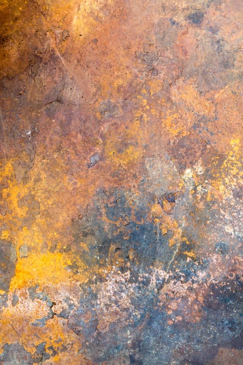 Yes, it is from the same dumpster. There were two peerings. The first was to see the walls of the inside. That was a big surprise because the outside was just green and not interesting, with no hint that the dumpster had ever had other colors. I had taken many photos of the walls when I peered further to take a look at the floor. That was an even bigger surprise: How could one dumpster have so much interesting and colorful variety?