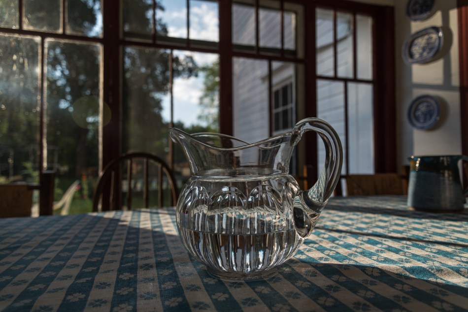 This entry was posted on August 22, 2018 by Linda Grashoff. It was filed under Built Environment, Houses, Objects and was tagged with early morning light, Farmhouse, photography, water pitcher, windows.