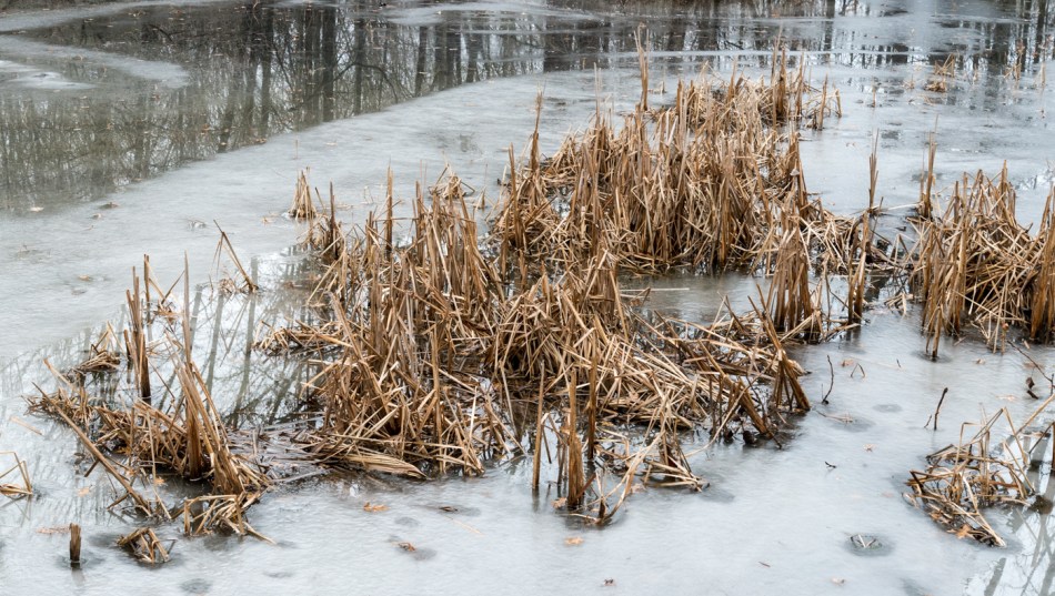 That’s a nicely isolated little leaf in #6, and then a different take on the theme in #7. Like you, I’m also fond of taking pictures showing dense scraggly bare branches in winter like #11 and #9. The same goes for the remains of cattails, as in #5. Does #10 show winterberry, Ilex verticillata? I remember dirty snow from when I grew up in New York.