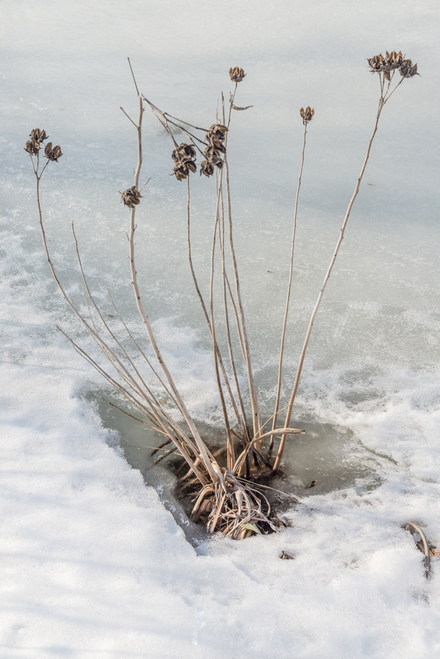 3. Hopeful signs! I’m glad you’ve been getting out, no matter what the weather. The opening in the ice in the first photo is almost heart-shaped and the plant, though it’s dead, seems to be rejoicing. There’s something poignant about the broken piece in the second photo. The third photo is odd but even a stub of a dead stem can melt snow – thermodynamics in action? 😉 I have no idea about the rust-colored snow but it’s awfully nice in the 5th photo, with that tree-shaped crack in the ice. That’s my favorite. I like #6, it could be far north somewhere. The last photo is very surprising – to me anyway. But wind and water – they do amazing things, right? Altogether the photos show the malleability of form. 🙂
