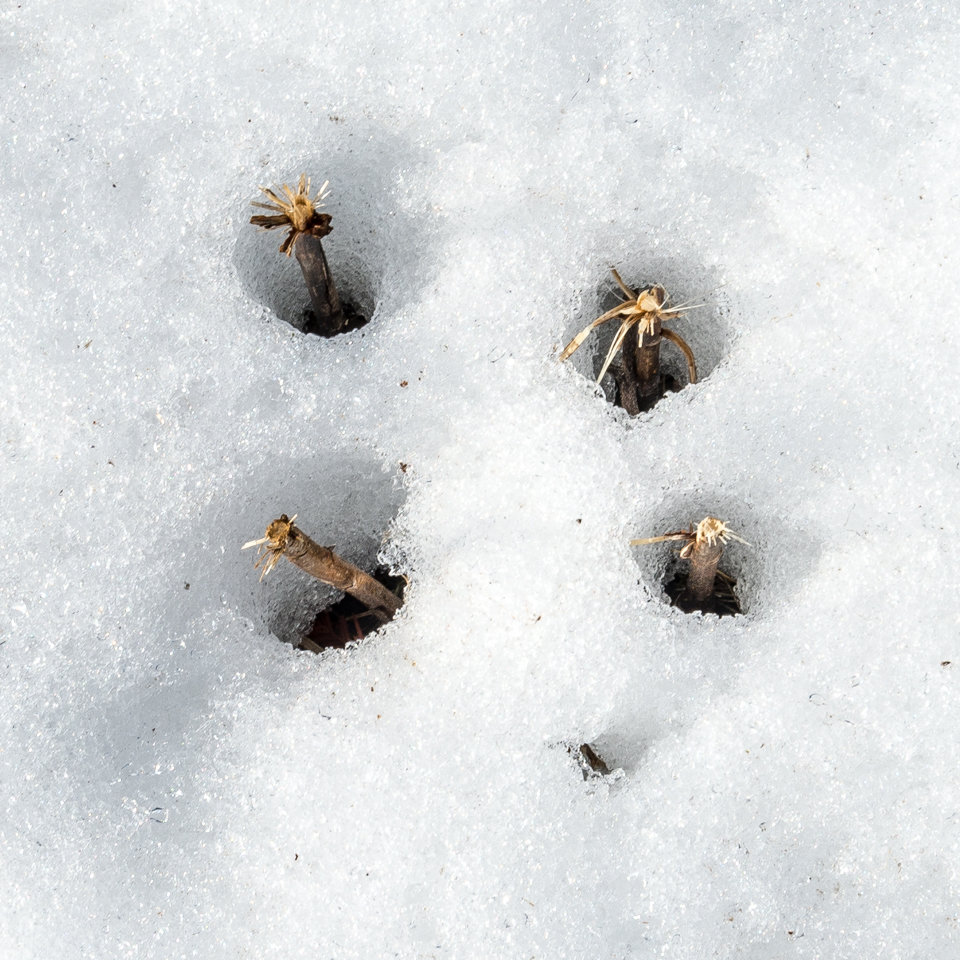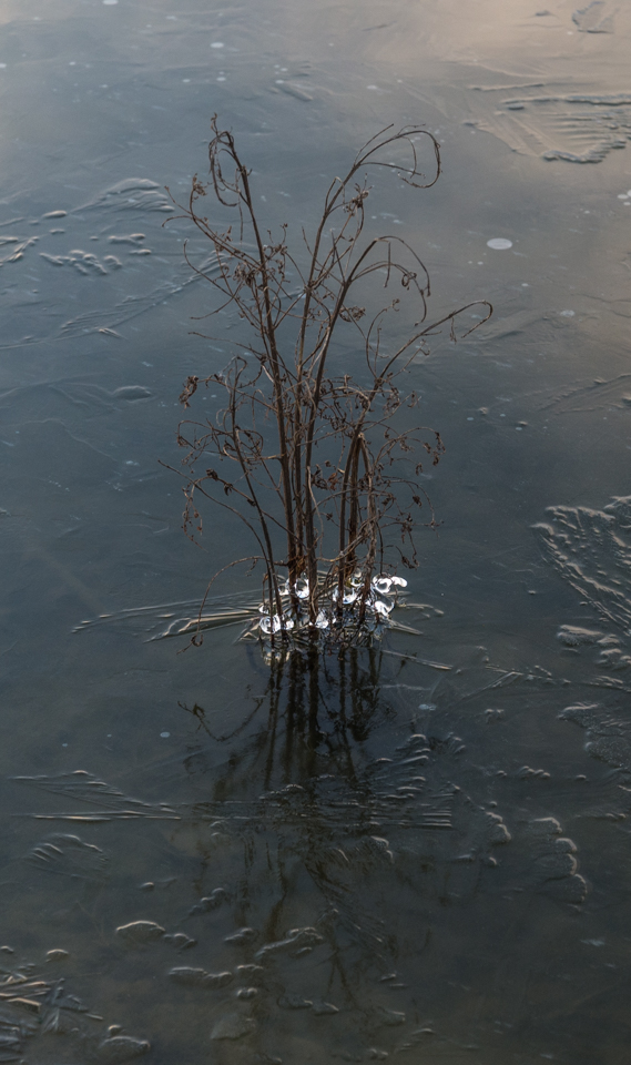 3. Hopeful signs! I’m glad you’ve been getting out, no matter what the weather. The opening in the ice in the first photo is almost heart-shaped and the plant, though it’s dead, seems to be rejoicing. There’s something poignant about the broken piece in the second photo. The third photo is odd but even a stub of a dead stem can melt snow – thermodynamics in action? 😉 I have no idea about the rust-colored snow but it’s awfully nice in the 5th photo, with that tree-shaped crack in the ice. That’s my favorite. I like #6, it could be far north somewhere. The last photo is very surprising – to me anyway. But wind and water – they do amazing things, right? Altogether the photos show the malleability of form. 🙂