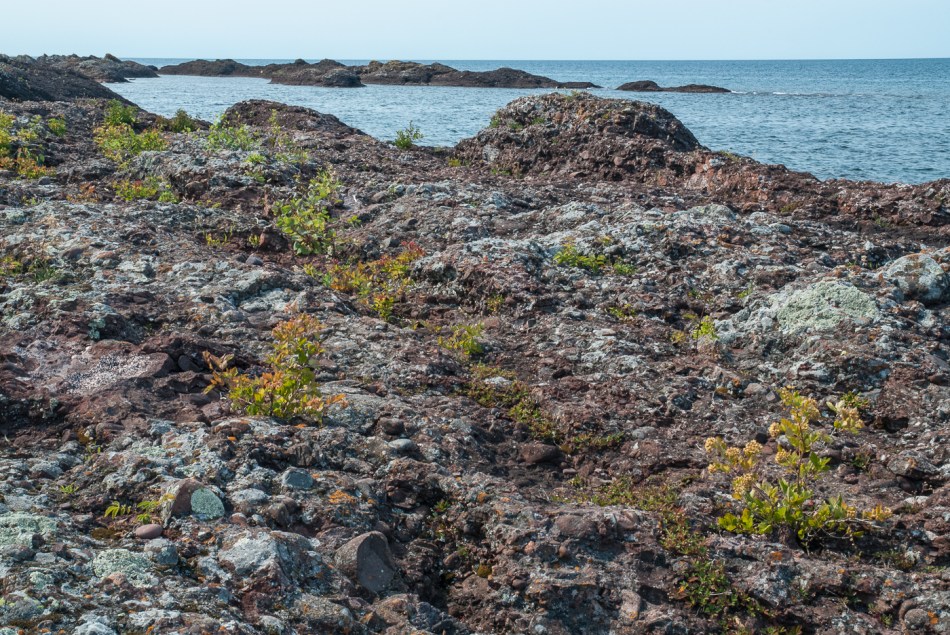 16 Most of the shoreline around Copper Harbor is stones like this.