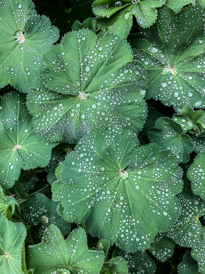 4 I didn’t have my camera with me when I saw these lady’s mantle leaves with beaded water. But I had my phone!