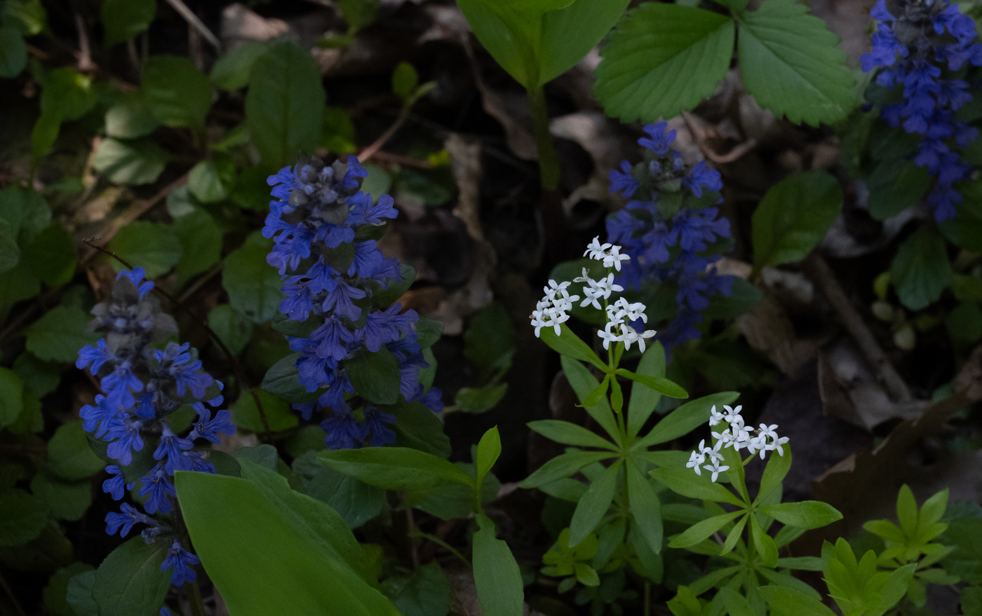 8 Solomon’s seal is blooming in my friend’s garden. That’s ajuga in the background.