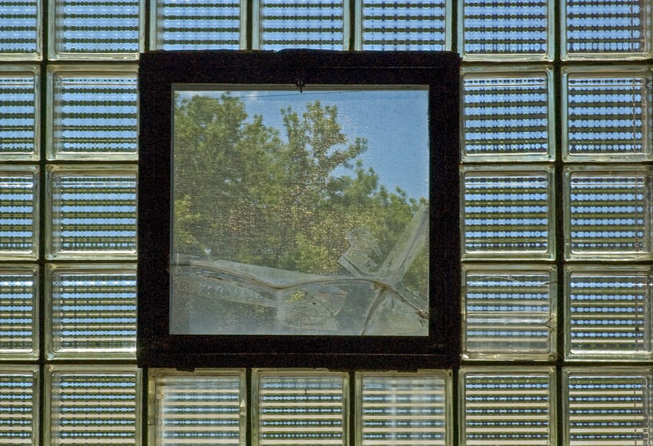 Yes, totally worth it. Oh, the last one! What a delight that is. I love what you did with the sculpture. The grating is a beauty. It must have been exciting to hear Robert Frost. Your powers of observation and composition raised #3 to the level of art. The yellow wall is also beautifully seen. Love the center of that window, too. That fidged, smudged, half-lit view. Nice, especially surrounded by the glass bricks. But I come back to the last photo…superb!