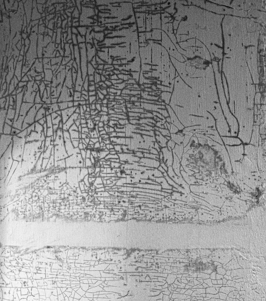 11 Rendered in black and white, it’s easier to see the lines on this wall. Just now, creating this post, the marks remind me of a map of an ancient city.