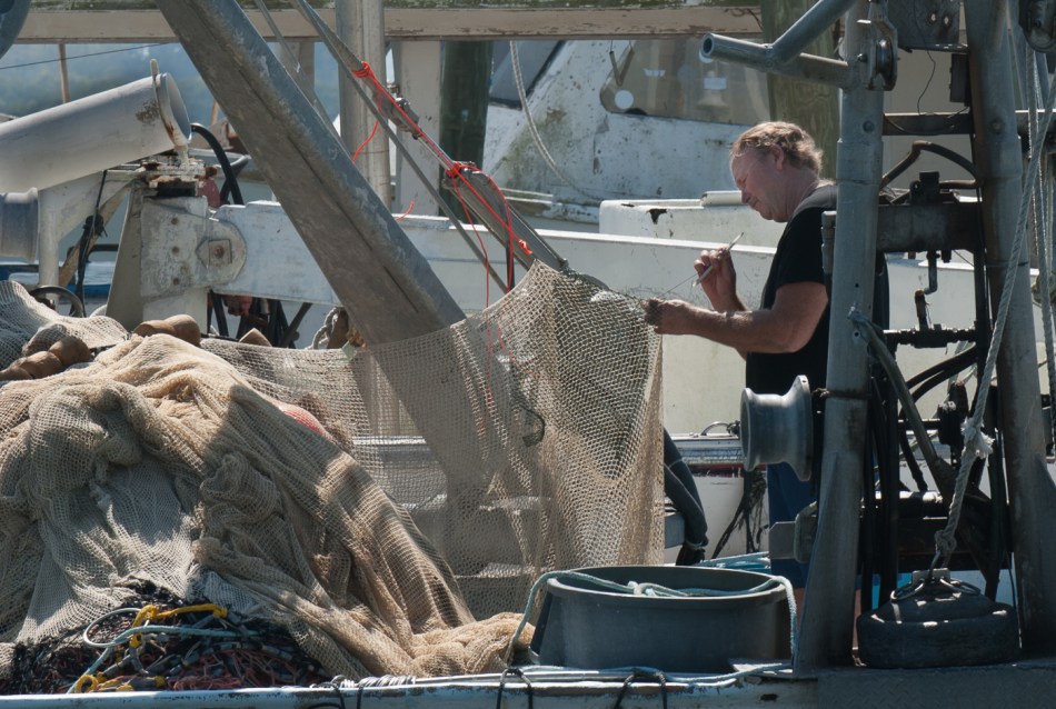 2  A fisherman in the nearby town of Cortez mends his nets.