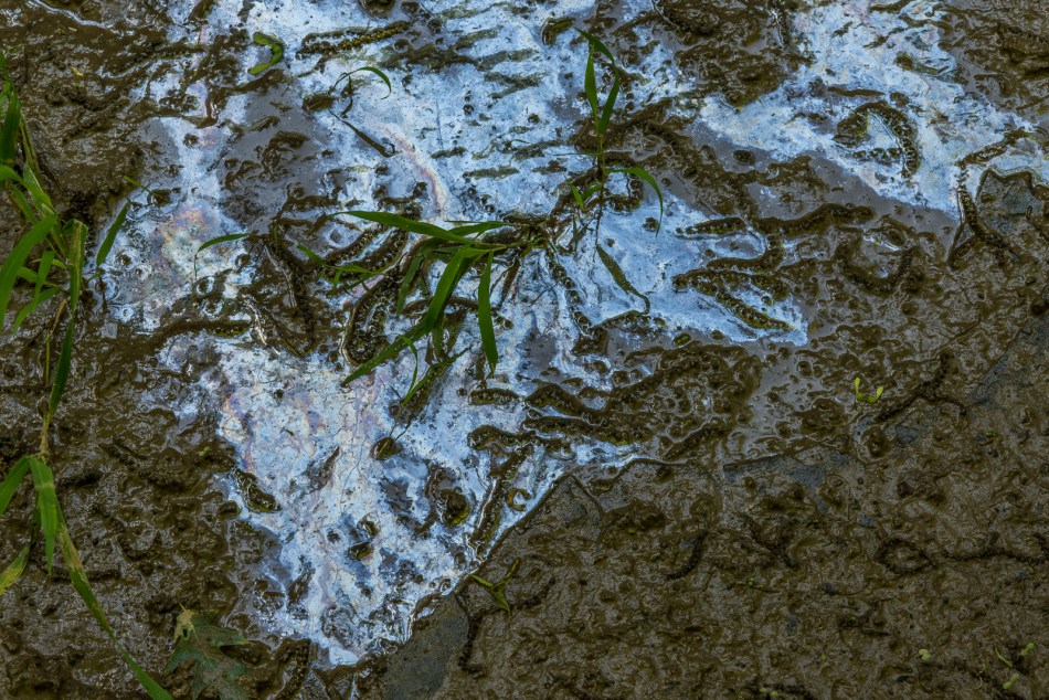 Kendal at Oberlin publishes a literary magazine, called Eureka!, three times a year. All the artwork and writing is by residents of this retirement community. I’m lucky enough to live at Kendal at Oberlin, and to have had an article with photographs published in the latest issue. The piece reveals the origins of my fascination with the iron bacteria. Since many of you have seen on this blog my photographs of the iridescent film that Leptothrix discophora creates on the surface of water, I thought some of you might be interested in reading about how my engagement started. Just click on the link below to find out. And please forgive my crude post-production edit on the next to the last page. I thought it made the story easier to understand. Below the link to the article is a photo of Leptothrix discophora film that I took last month at Schoepfle Garden.