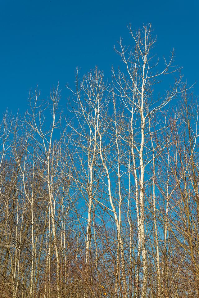 1 What photographer can ignore an S-curve? I wonder if the curve here has to do with the varying depth of water in the pond.