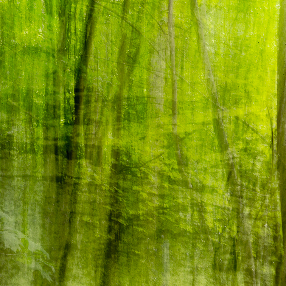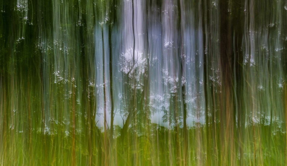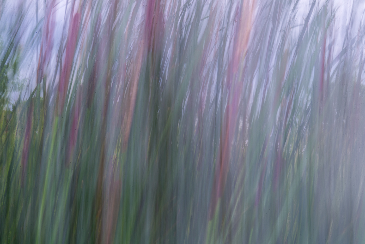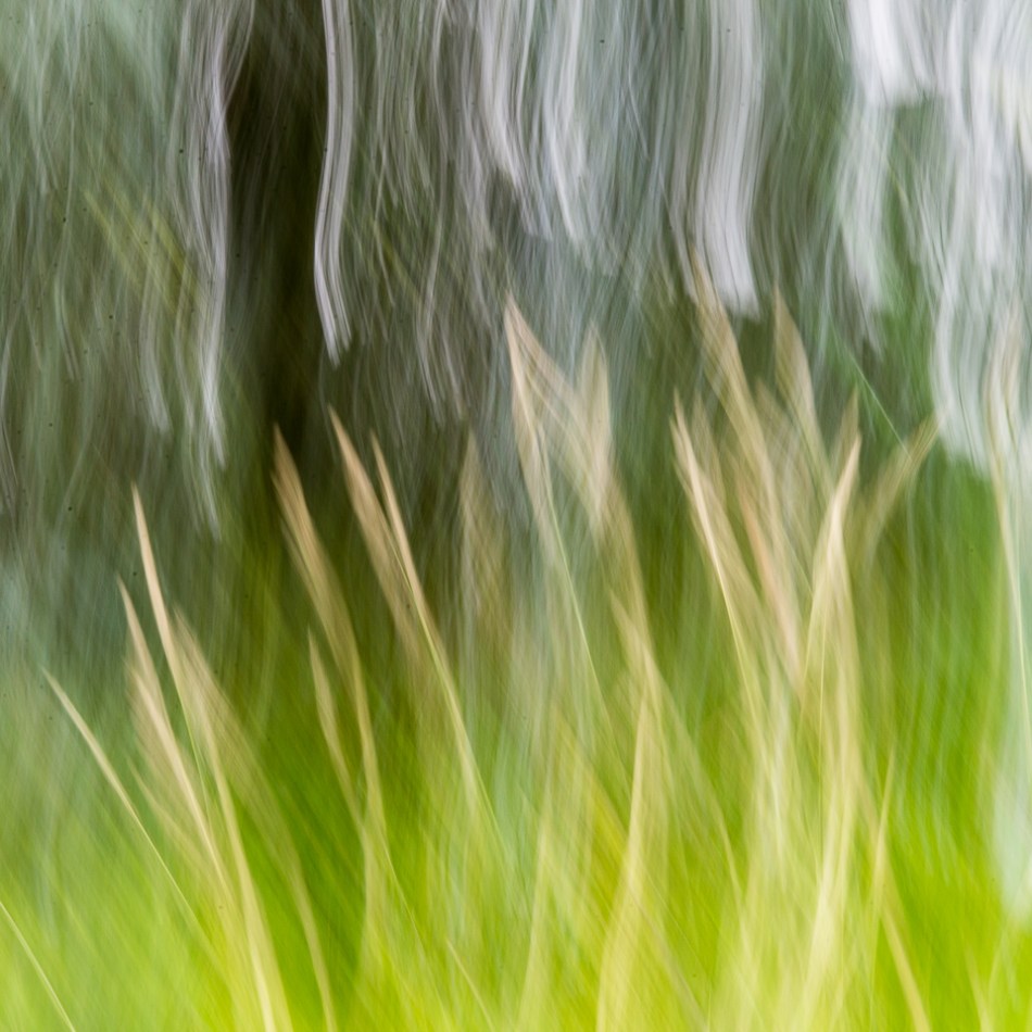 Yesterday I followed and unfollowed paths around my immediate neighborhood. I found baby oak leaves overlooking tall grasses; a willow tree behind goldenrod plants and before cattails sprinkled with pseudacris; a path through a wooded area dotted with daisies; very young films of Leptothrix discophora, some in front of a small outcrop of sedge; a duckweed-covered pond rising to meet hanging branches of another oak tree; and more duckweed in a different pond in the rain. I also took another stab at Intentional Camera Movement.