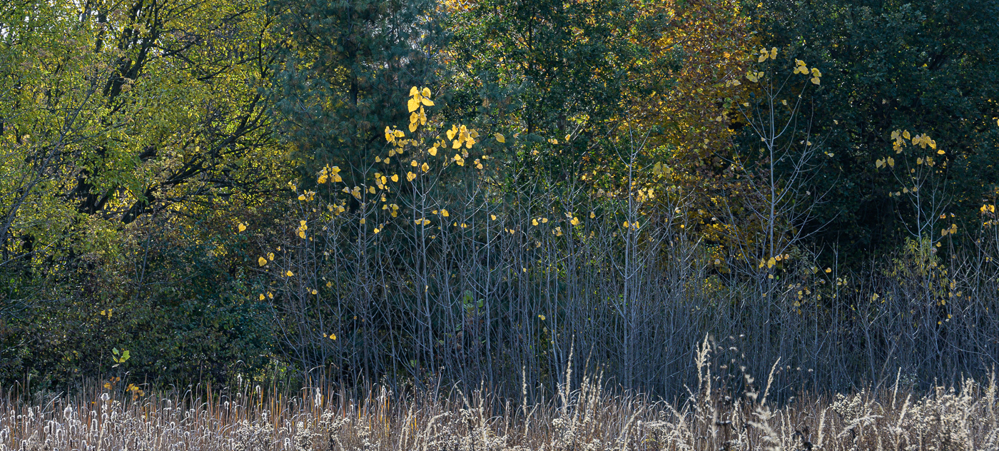 2 Lingering leaves on baby cottonwood trees could almost be taken for flowers.