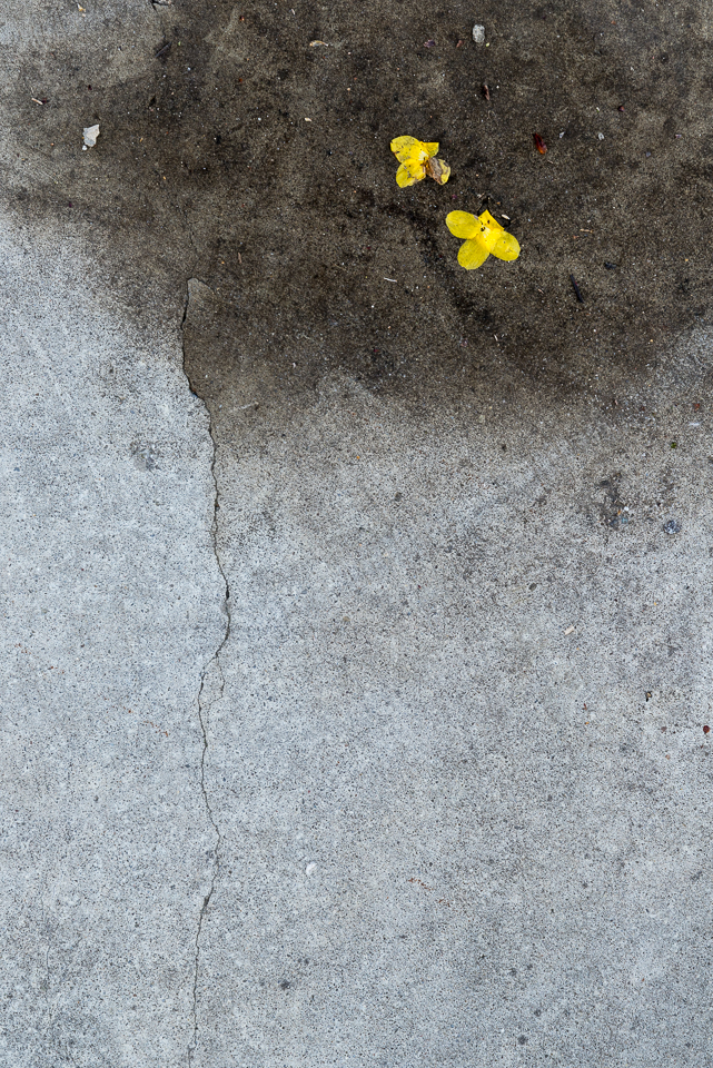 I took this photograph more than a month ago and almost forgot about it. These are fallen forsythia blossoms.
