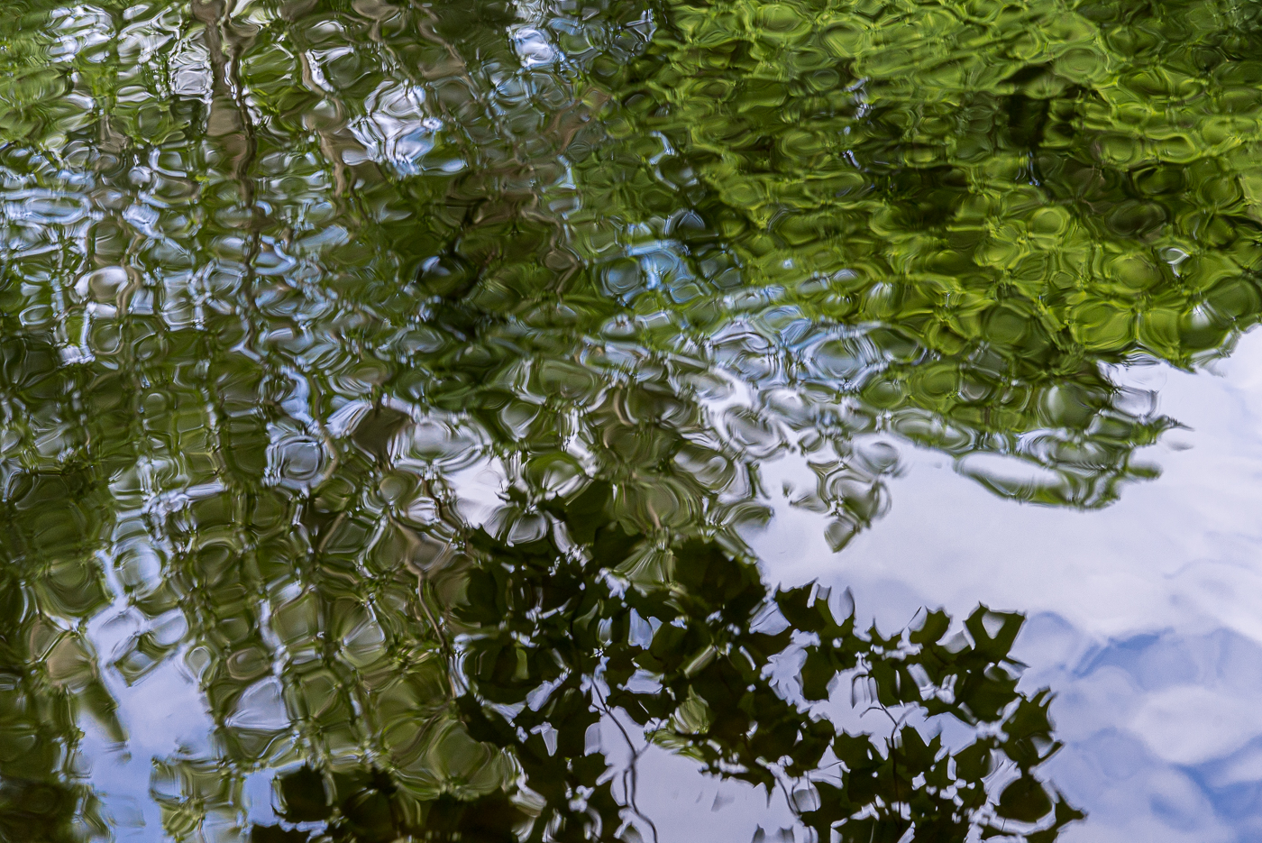 If you saw my last post, you may have noticed that the photographs tended to be in gold and yellow hues. This post continues with more photographs of the surface of the Back Pond at Schoepfle Garden. These, taken between 2002 and 2017, start with greens and blues and end in near black and white. The three-part series began with photos highlighting the setting of the Back Pond.