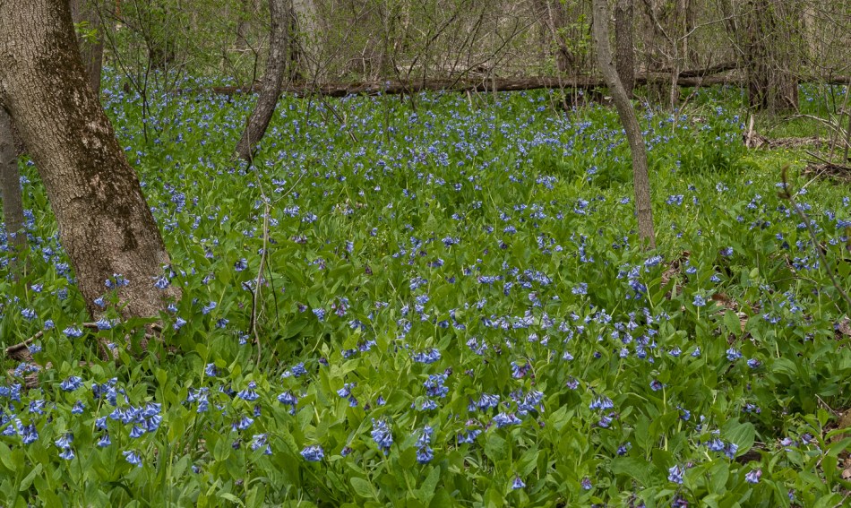 1 We hadn’t gone far down the trail before we were inundated with bluebells. These don’t look like bluebells to the Texans among you because they are Virginia bluebells (Mertensia virginica) rather than Texas bluebells (Eustoma exaltatum ssp. russellianum).