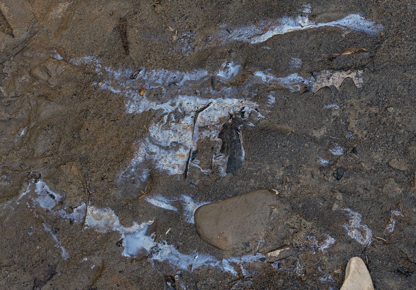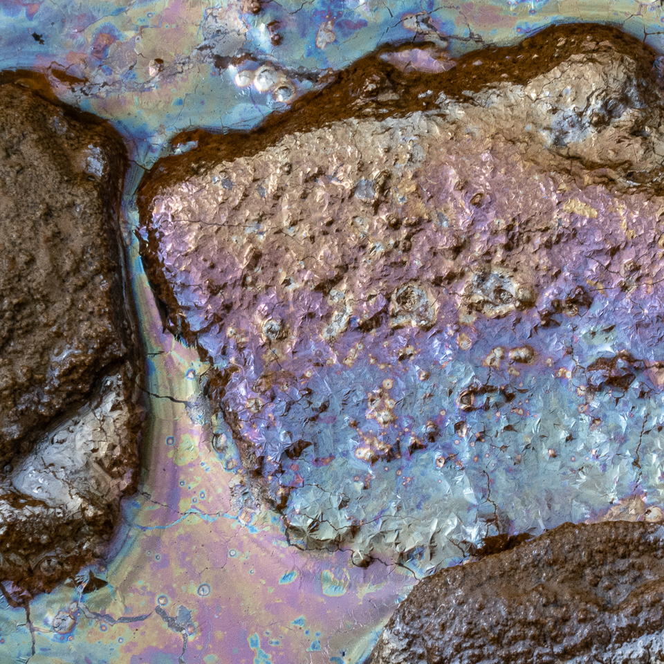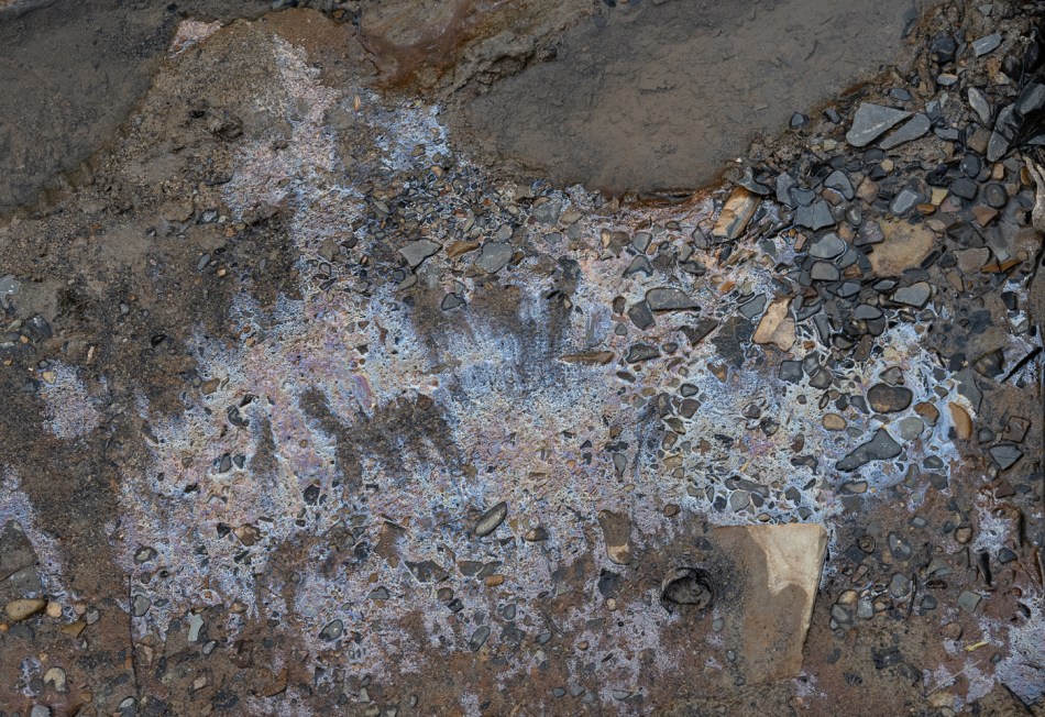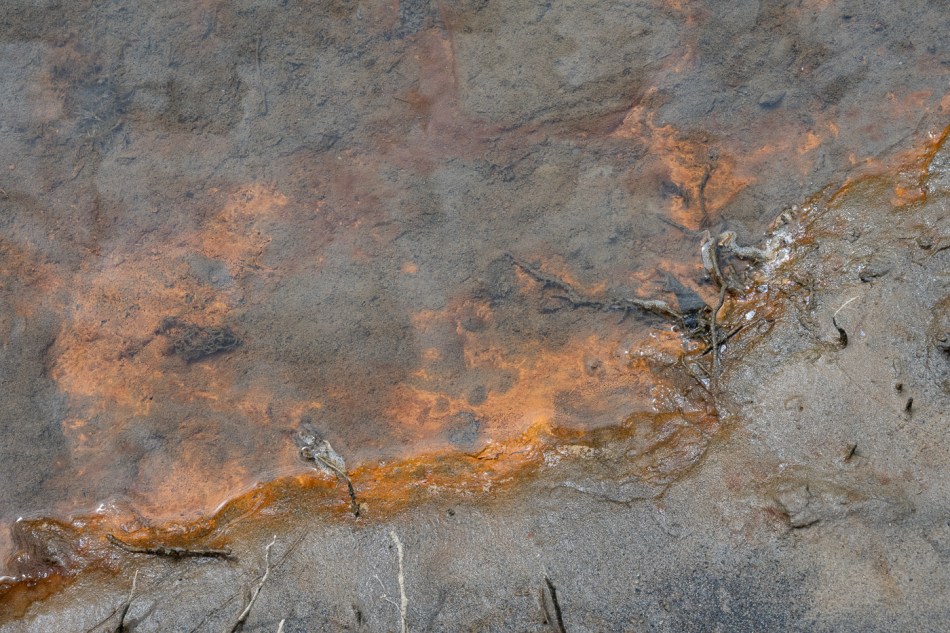 15 With so little evidence of Leptothrix discophora nearby, this patch of iron oxide in the water may signify the presence of other iron-oxidising bacteria.