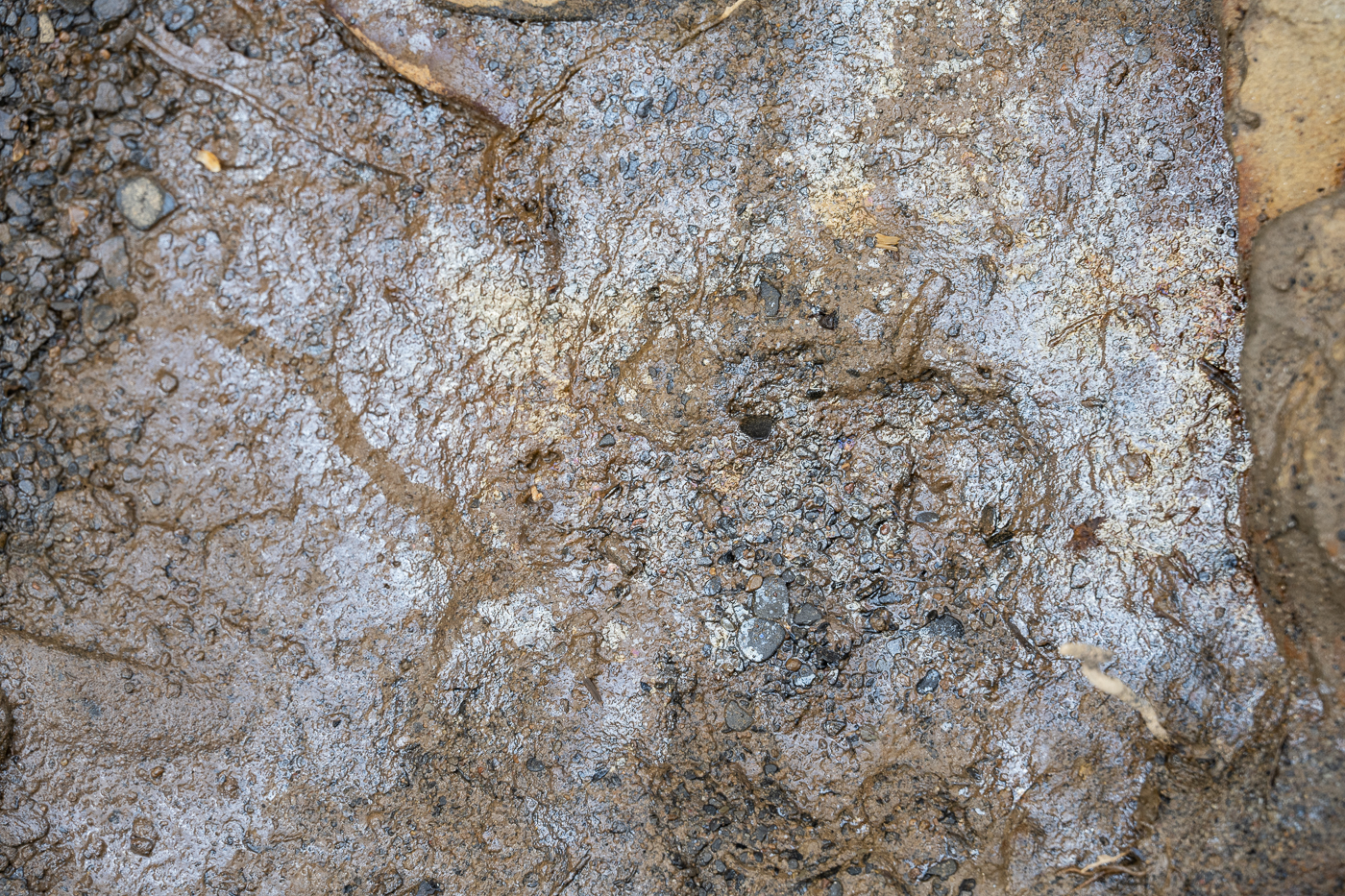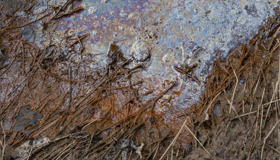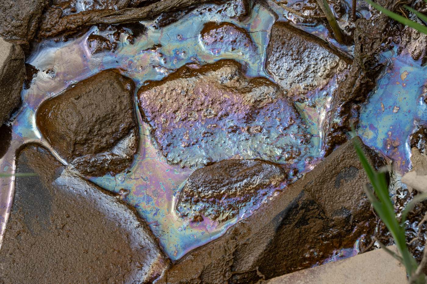 15 With so little evidence of Leptothrix discophora nearby, this patch of iron oxide in the water may signify the presence of other iron-oxidising bacteria.