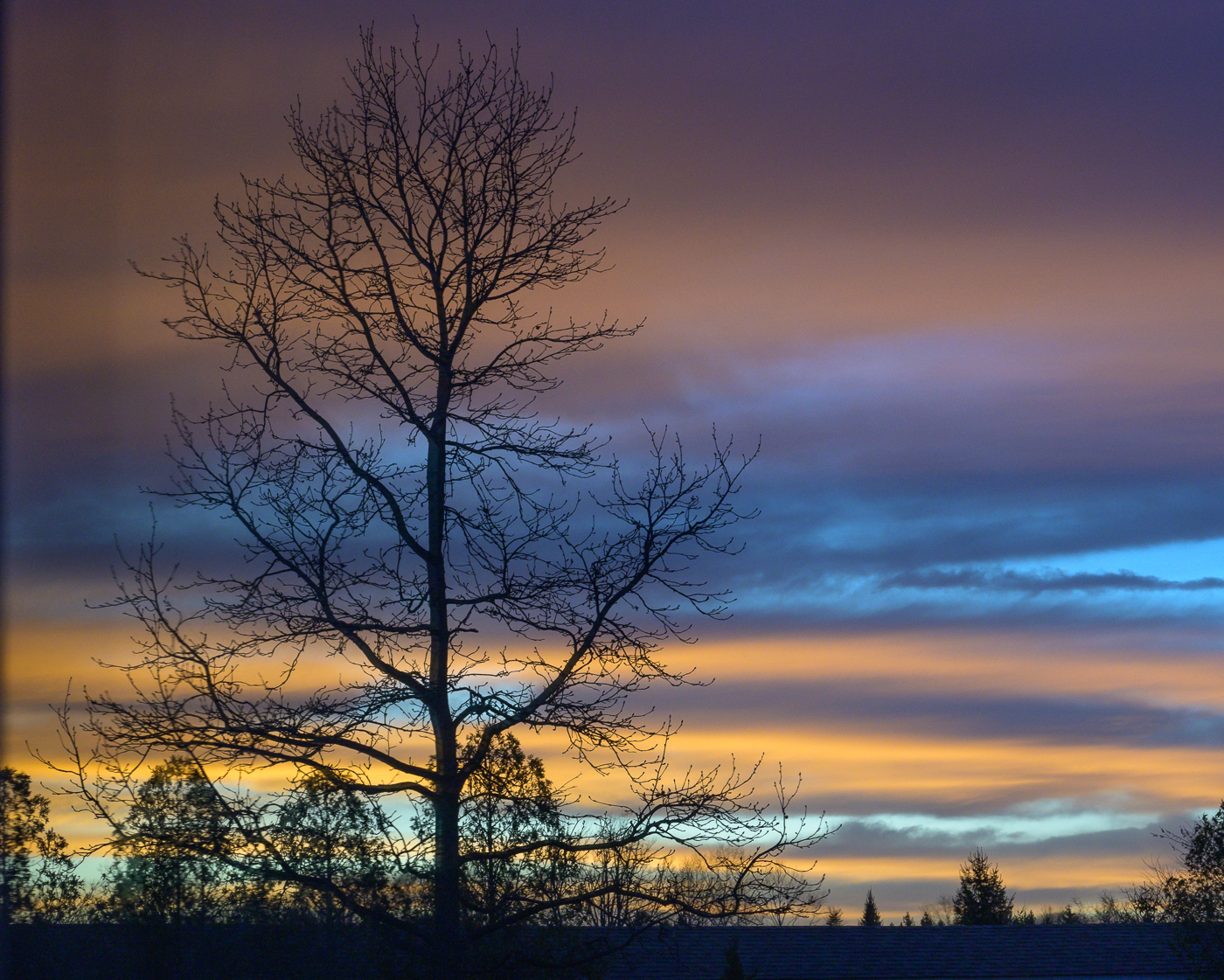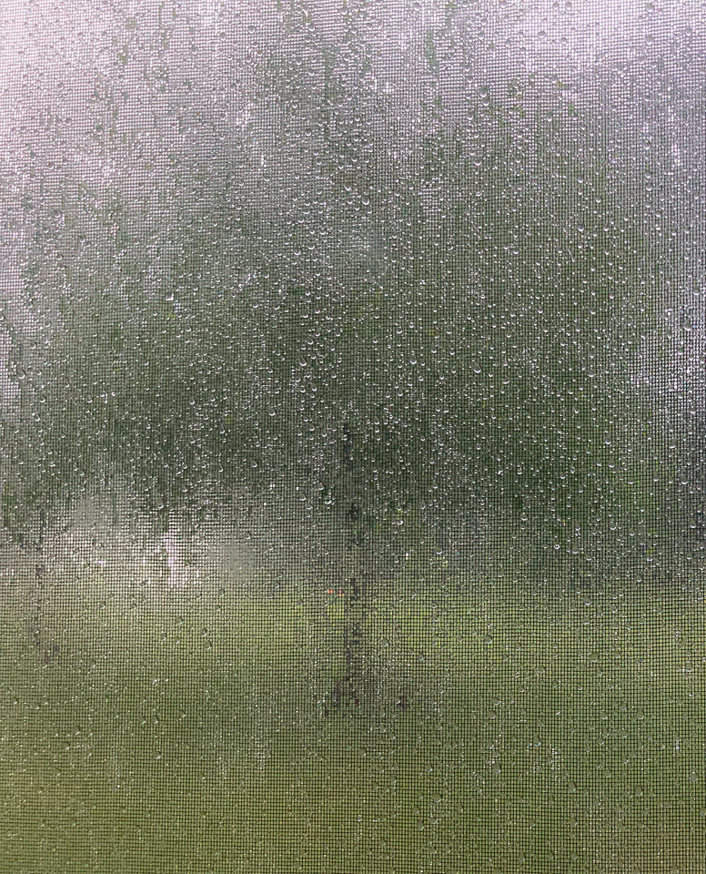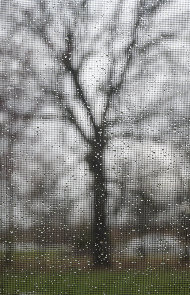 The first three photos show what I see when I look out my back window in the rain.