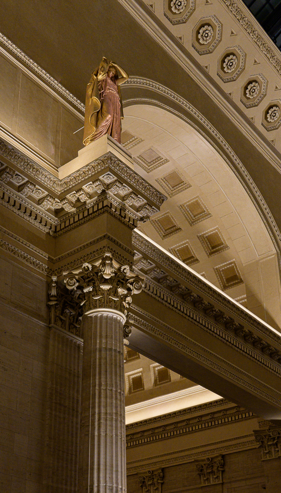 If you’ve been reading this blog since September 2018, you’ve seen many photographs I’ve taken inside the Wisconsin State Capitol Building. (Look here and here and here.) Last month, visiting family in Madison, I made another pilgrimage to the building, hoping I could find something new to photograph or a new way to photograph something I’d seen on the other visits. This year we took the train as far as Chicago, and going inside the big old rooms of Union Station to catch the train home, I was surprised by details that recalled what I’d just photographed in Madison. I wondered if the same architect had designed both buildings, but no. George B. Post designed the Wisconsin capitol building, and Daniel Burnham designed Union Station. What I learned by Googling is that both architects worked in the Beaux-Arts tradition. So that is Beaux Arts. I had heard the term but never looked it up.