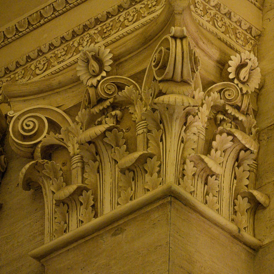1 This ornament at the tops of columns (I’m probably not using the right words) in the capitol building are not exactly Mr. Post’s original idea. What I take to be a speaker in this photo is a late addition, I think.