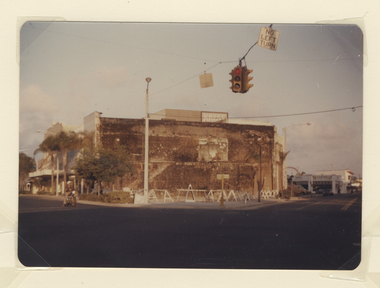 Here is a close up of the HW, followed by the flat-iron-building image and a photograph of the unoccupied spot, both from Mr. Kelleher. I’m sorry that I don’t have a photograph of my own to show how the location looks now, but I was able to take a screen shot of a Google Live View of the spot, which is the fourth photo here. Here’s the web address for the live view: https://www.google.com/maps/@27.33645,-82.542456,3a,40y,166.15h,78.56t/data=!3m4!1e1!3m2!1seggsin8S1-Nx4P27chyvtQ!2e0