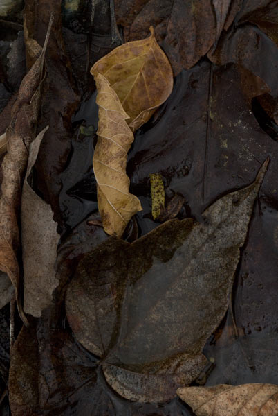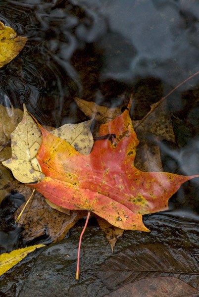 During my walk in Schoepfle Garden about two weeks ago (cloudy October 15), the leaves that had fallen to the ground—in my path or in the river—caught my attention.