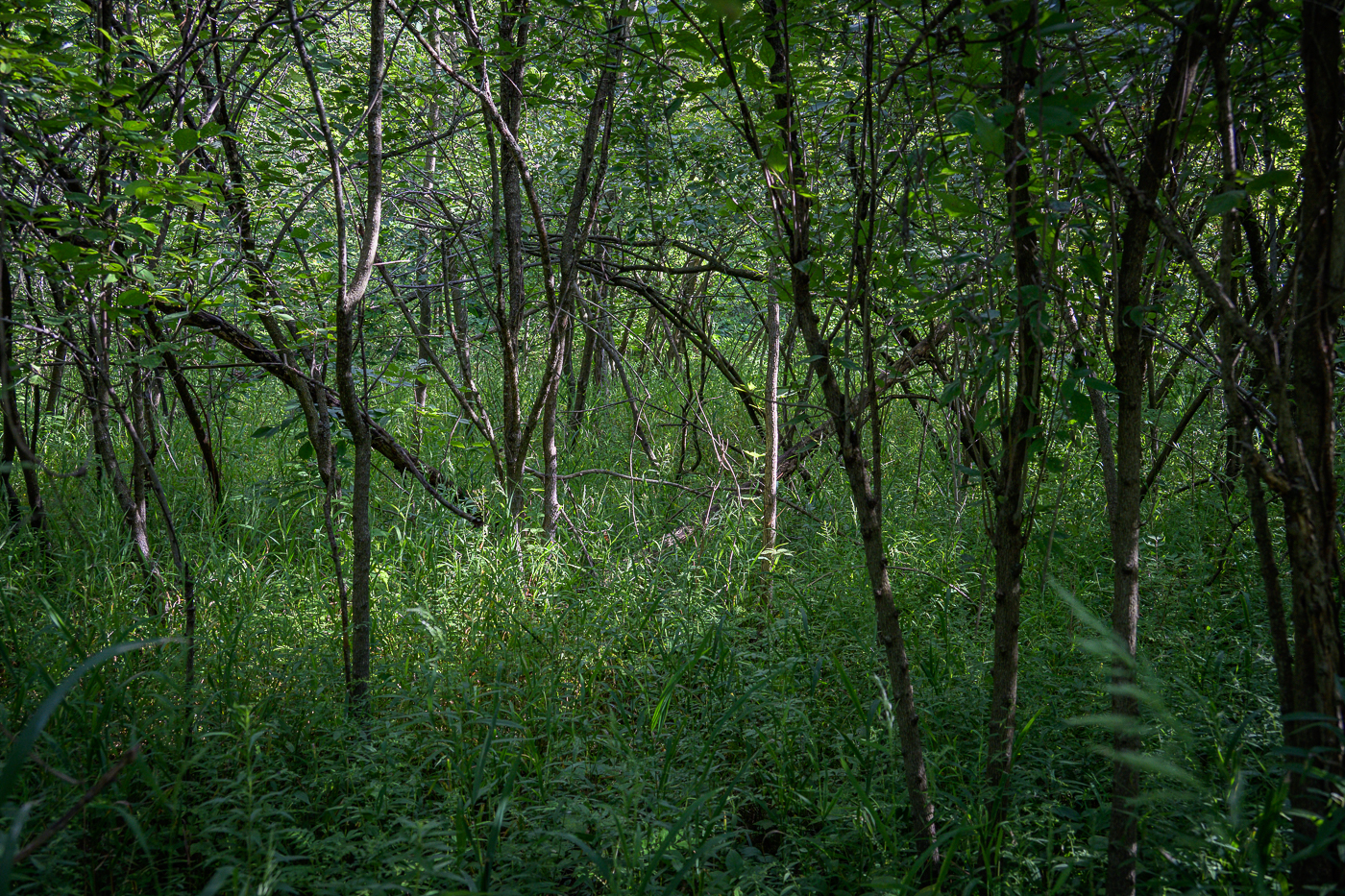 4 I thought at the time that a photo of this nurse log would be one of many favorites of the day. It turned out to be the best of the photos taken in the woods, but even with a lot of lightening and darkening to bring out the feeling I had seeing the log, the result is marginal—not to mention unprintable for all the noise.
