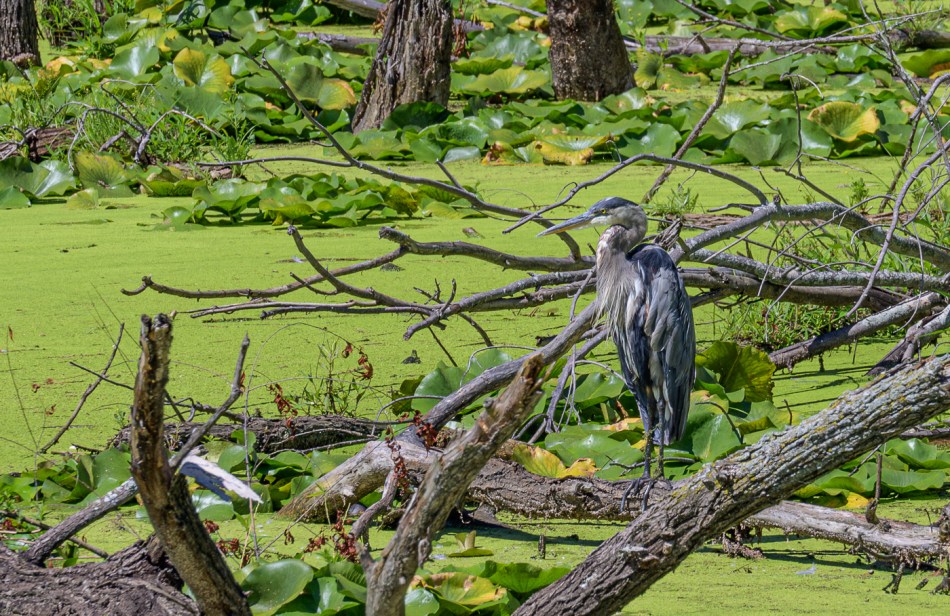 10 In the spring, according to friends and the Sheldon Marsh State Nature Preserve website, birds are abundant here. Mic. is the one who noticed this great blue heron. She looks a bit unkempt; I wonder if she’s been spear-fishing. I hope she was not disappointed with her catch.