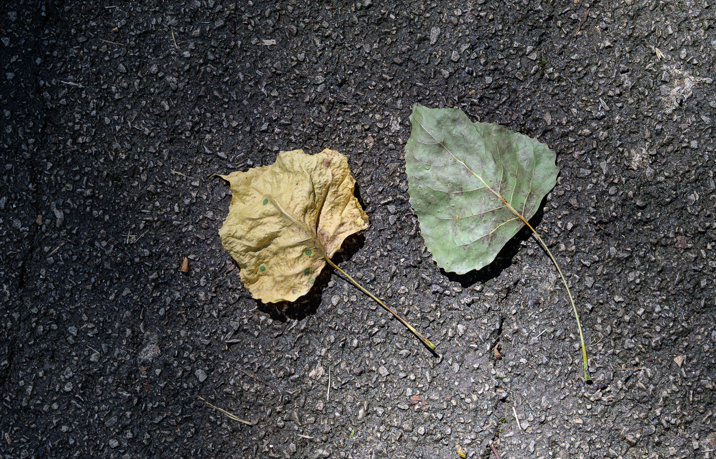 11 Nearly back at the car I noticed these two leaves on the paved walk. I didn’t know yet that I would be disappointed in the day’s photographs. Still, the words “memento mori” sprang to mind. A harbinger of my mood at download?