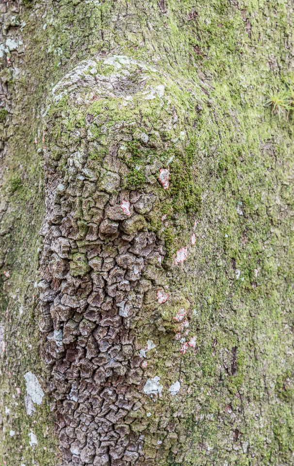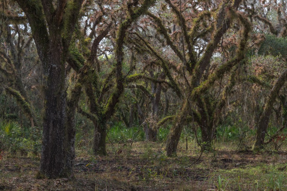 The way that life grows on other life may be especially visible in semitropical and tropical locations. In Florida festooned trees draw my attention and wonder. A walk this winter in the Myakka River State Park with my friend Jean provided more instances of such complexities than usual—probably because Jean pointed out some beautiful examples at the very beginning of our wandering. The culmination was a tree and its inhabitants that Jean calls her favorite tree. Perched bromeliads (some people call them air plants, though that is a misnomer) and mosses growing on trees are easy to spot and appreciate. So are many species of lichens, which are not plants at all but hybrid life forms that combine fungi and (usually) green algae or cyanobacteria. Jean’s favorite tree is special for hosting a variety of lichens, including the subtlest—pale washes of color that make you lean in to see if you can catch when one faint hue gives way to another. Even a short walk through a forest of growth on top of growth may be enough to make you marvel at the connectedness of life, perhaps even to recall the John Donne poem.