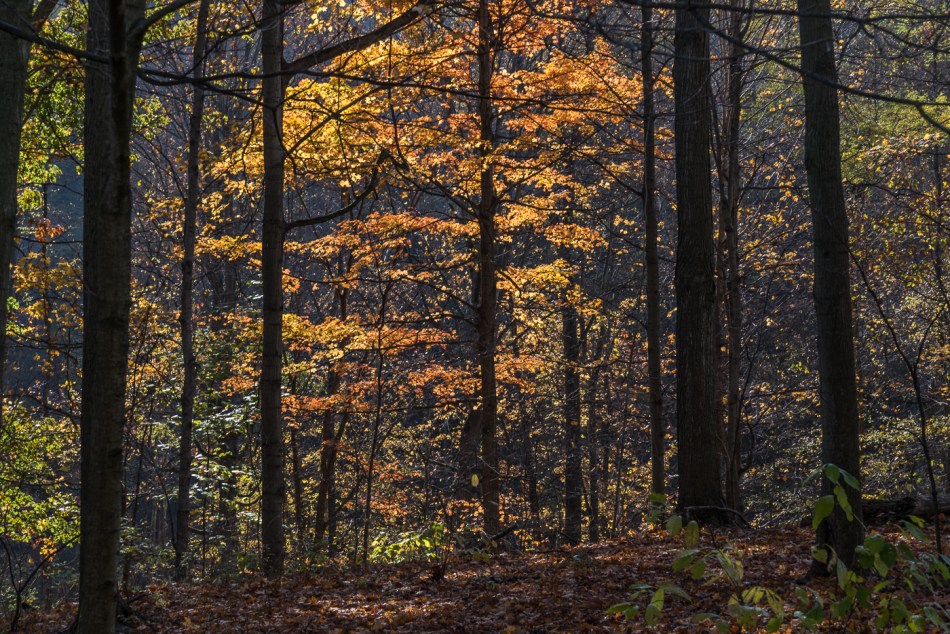Fall color was past its prime by the time I got out to Schoepfle Garden October 29. Still, some lovely remnants remained. Besides photographing them as is, I played around with intentional camera movement (ICM) again. That I took the fourth photo here is thanks to Steve Schwartzman, who asked in the comments section of the last post, “In any of these, did you zoom your lens while you moved the camera?” I had not, but at Steve’s prompt, I tried it on this trip. Will try it again. What fun.