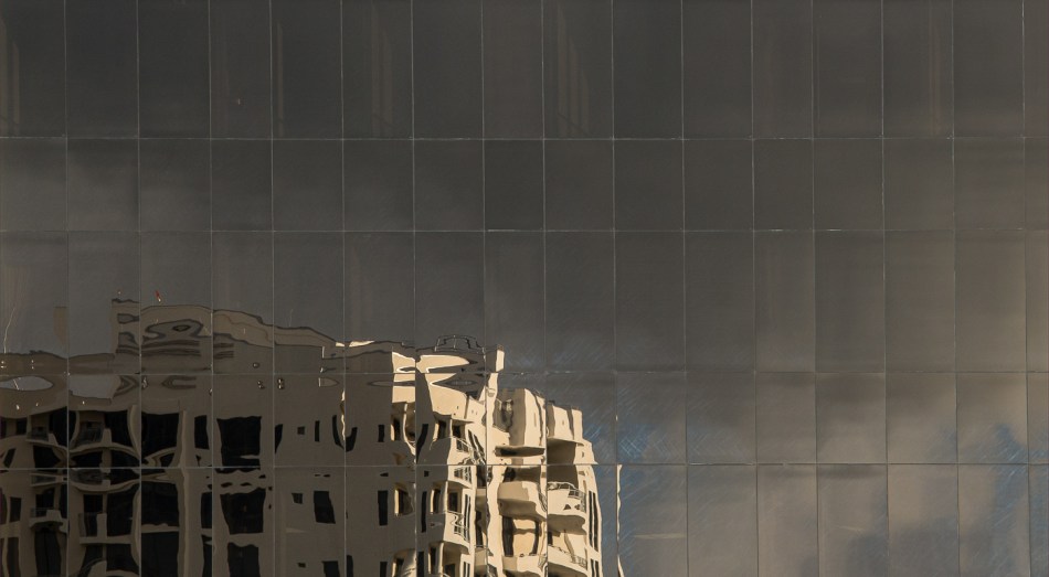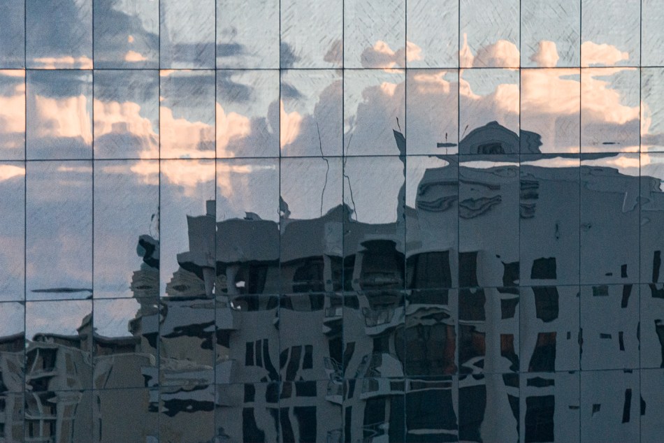 In Sarasota stands a glass-walled building that fascinates me because of how it reflects the sky and a nearby building. Here are photographs I took of it between 2008 and 2014.