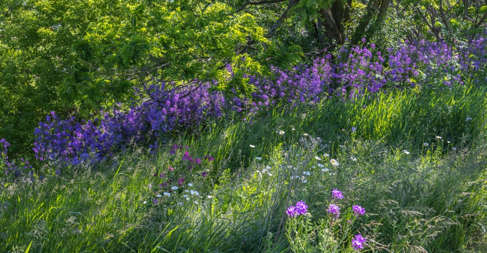 1 Wildflower Hill is covered in dame’s rocket (Hesperis matronalis). I find these flowers beautiful and thought they were benign. Lynn Wohlers (bluebrightly.com) educated me. Alas, they are considered invasive across the U.S.