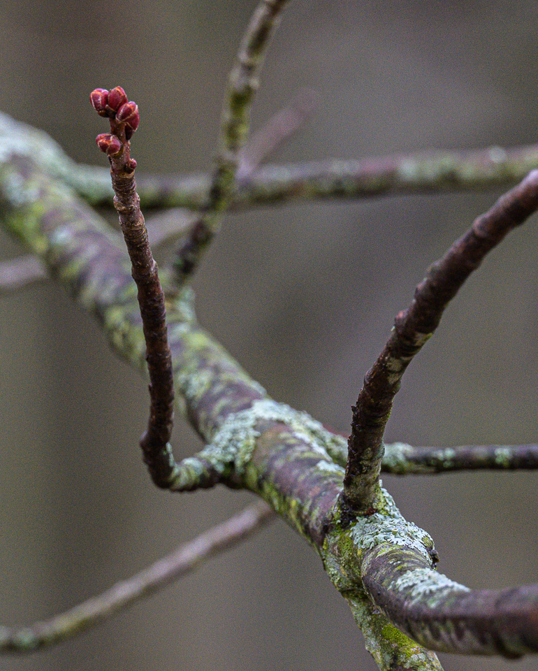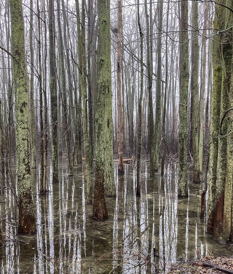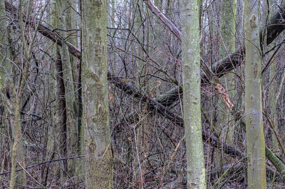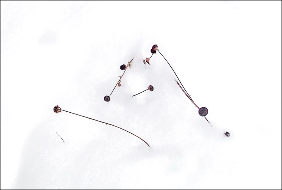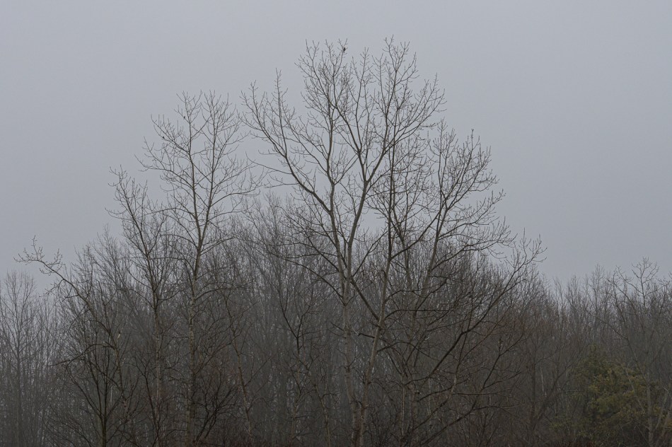 You’ll see the snow, and you’ll see the fog in these photographs. But you won’t see the clouds because they covered the whole sky. That’s winter where I live. The photographs in this collection were all taken in January a walking distance from my home.