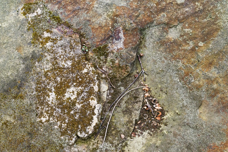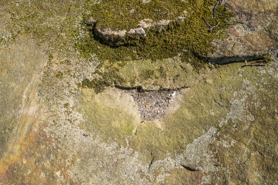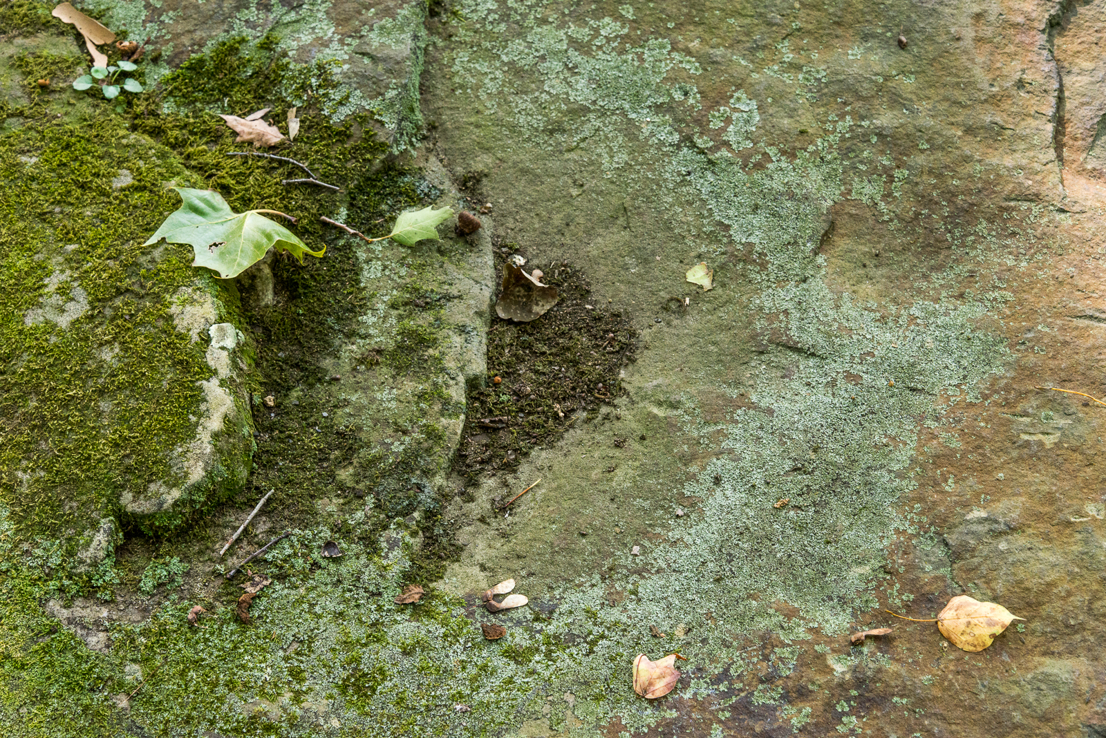 I pass this slab of quarried sandstone nearly every time I visit Schoepfle Garden. It never looks the same. The first photograph is from my trip this past Sunday, April 14. The second is from about a year ago, April 18, 2017, and the third is from August 26, 2017. I know there are others . . .